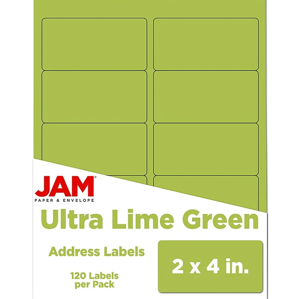 Label your mailing packages and envelopes with the JAM Paper Ultra Lime Green Address Labels. With a bright color and a smooth finish, these rectangular address labels look sophisticated. You can print or write addresses on these paper mailing labels.