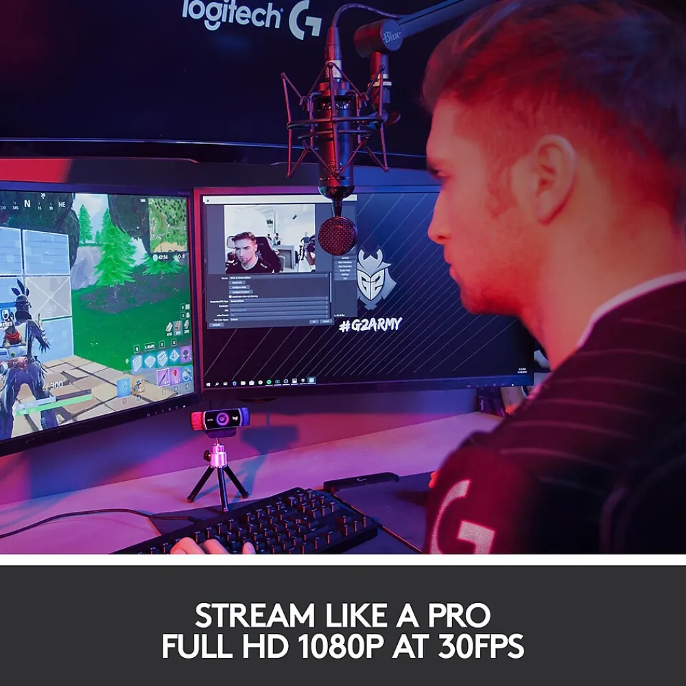 Live stream with outstanding clarity with the Logitech C922 webcam, designed and built for streamers who take their game seriously. With a choice of 30 fps at 1080p or the hyperfast 60 fps at 720p, you can record or go live with vibrant, true-to-life video on channels like Twitch and YouTube. Broadcast masterfully with reliable no-drop audio, autofocus, and a 78° diagonal field of view. Two omni-directional microphones accurately capture your voice from multiple angles for greater nuance. Go pro with features for XSplit, or customize your stream with Logitech Capture.