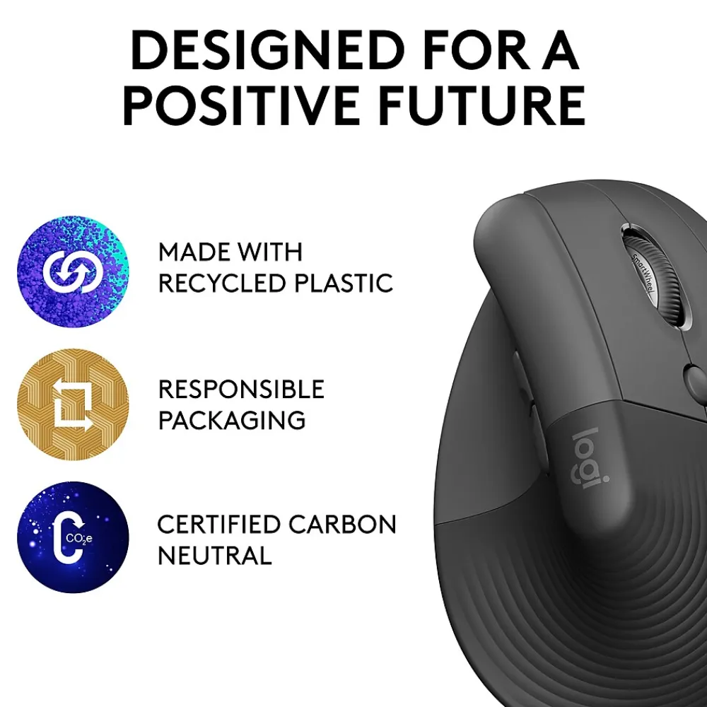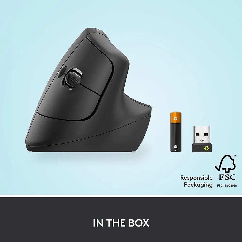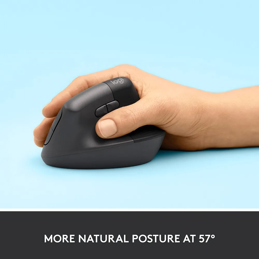 When the desk life gets you down, lift yourself up. A great fit for small to medium hands, the Logitech Lift Vertical Ergonomic mouse is crafted for comfort from first light to late night. Raise your hand into instant comfort with a soft rubber grip and cozy thumb rest. Realign into a more natural posture at 57 degrees. And feel focus flow from morning to night with productivity features designed to suit your working style. Connect easily to up to three devices via Bluetooth or Logi Bolt, and enjoy up to 2 years of battery life on a single AA battery.