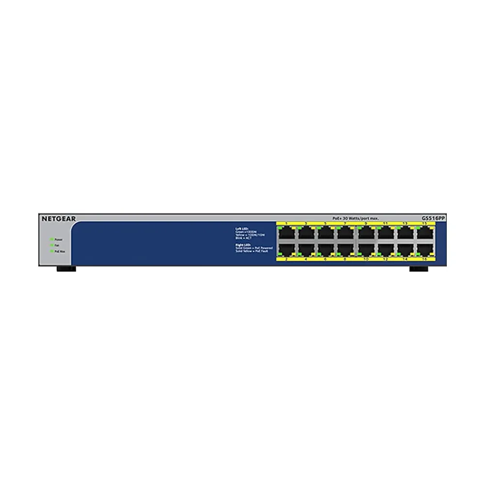 The Netgear 16-port high-power PoE+ Gigabit Ethernet unmanaged switch joins the Netgear unmanaged switch family, adding full 16 ports support for flexible deployment of modern high-power PoE devices. Companies can now deploy denser PoE+ devices connected to a single switch instead of multiples with a total PoE power budget of 260W. The quiet design makes it perfect for any home or business environment.
