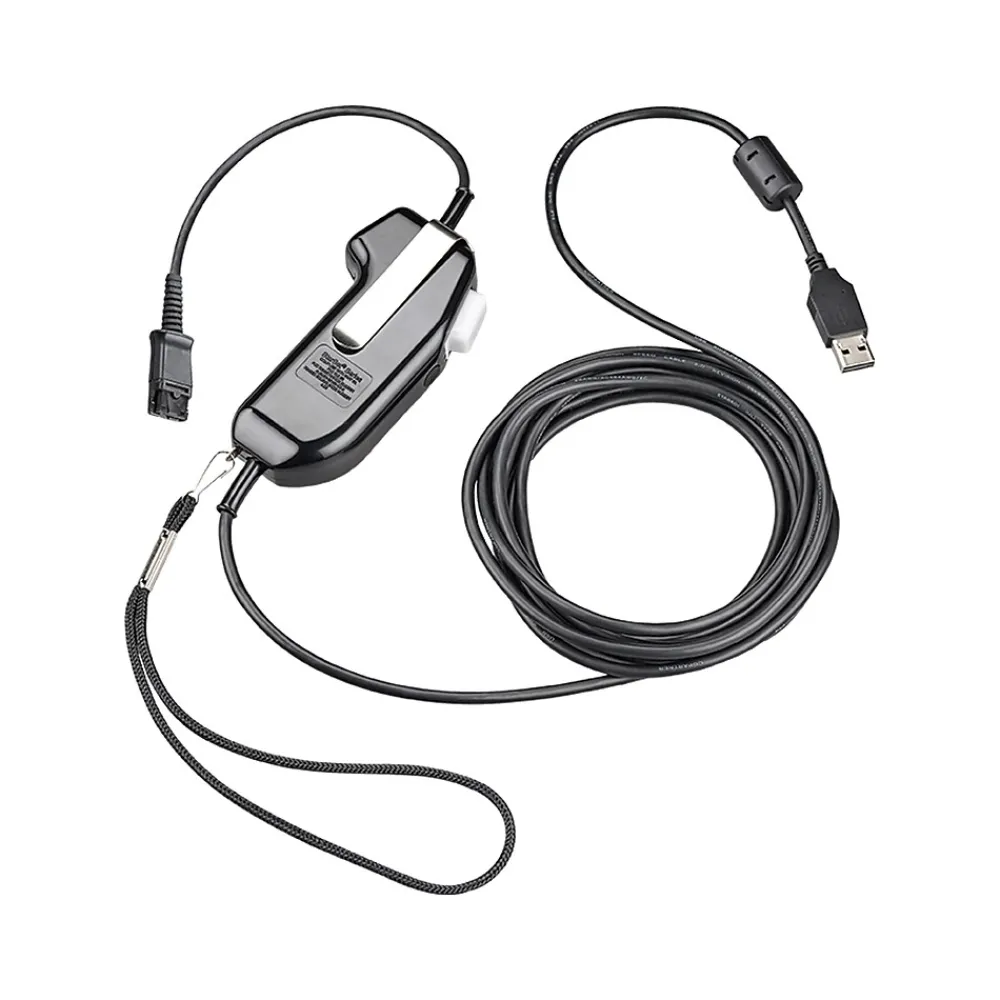Poly SHS 2626-13 corded USB – PTT, secure voice headset attachment. Secure Voice means that, by default, microphone audio is disabled, or muted. Depressing the PTT button turns the microphone on. Secure Voice products do not send a PTT signal to the host system. 4 pin Quick Disconnect