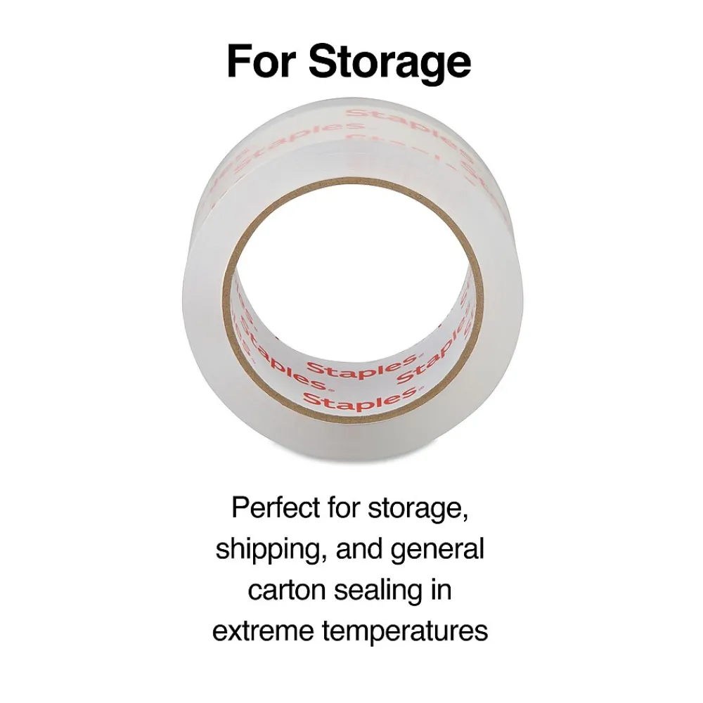 The moving and storage tape is a long-lasting and economical acrylic tape designed to provide a secure seal when packing boxes to move and store.