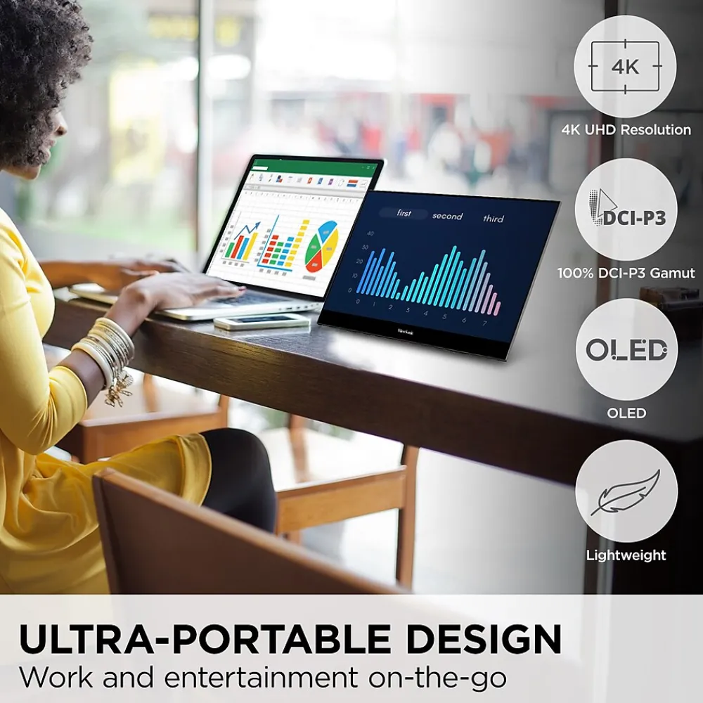- ULTRA-PORTABLE MONITOR: 15.6 Inch 4K UHD (3840x2160p) OLED portable monitor with 60Hz refresh rate and protective screen cover