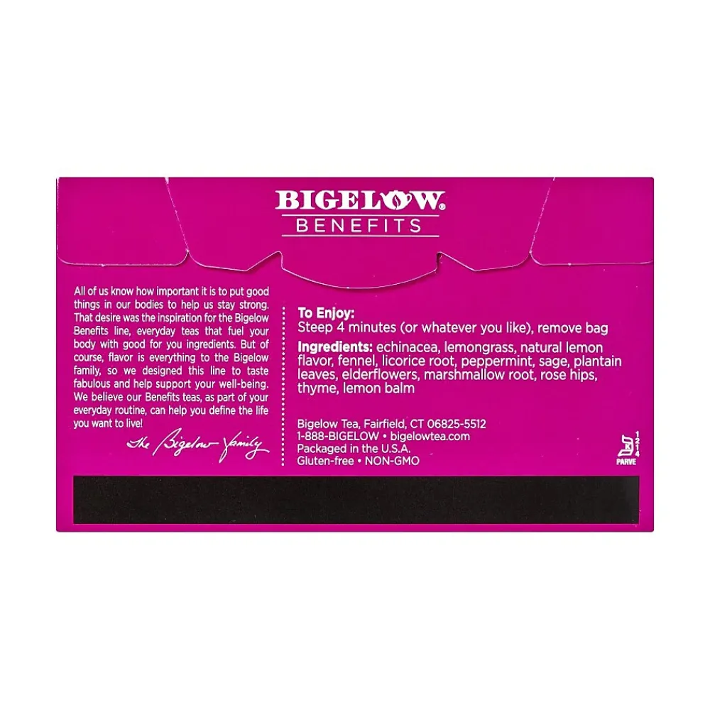 Stay well every day with Bigelow Benefits lemon echinacea herbal tea. It features authentic echinacea and crisp lemon flavor with a smooth relaxing herbal end note. All of us know how important it is to put good things in our bodies to help us stay strong. That desire was the inspiration for the Bigelow Benefits line, everyday teas that fuel your body with ingredients that are good for you. But, of course, flavor is everything to the Bigelow family, so they designed this line to taste fabulous and help support your well-being. They believe the Benefits tea, as part of your everyday routine, can help you define the life you want to live