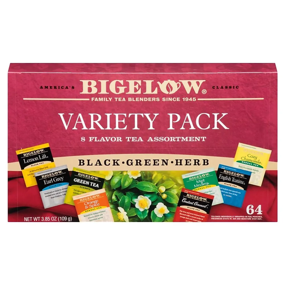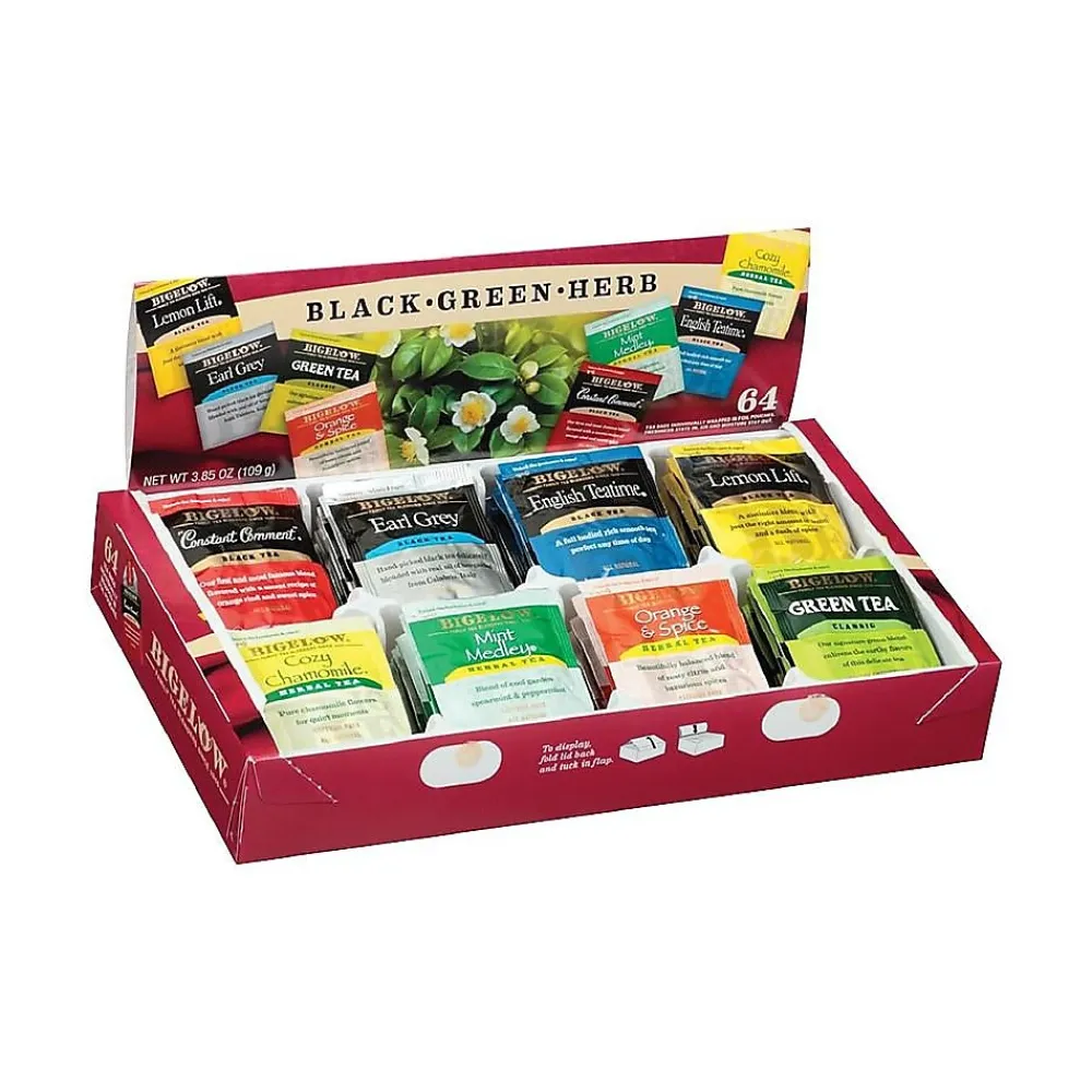 Satisfy employees who need a boost with the variety of teas in this gift box. Thee collection of teas in this Bigelow herbal tea variety pack comes in a display box that makes it easy to grab your favorite flavors at a glance.