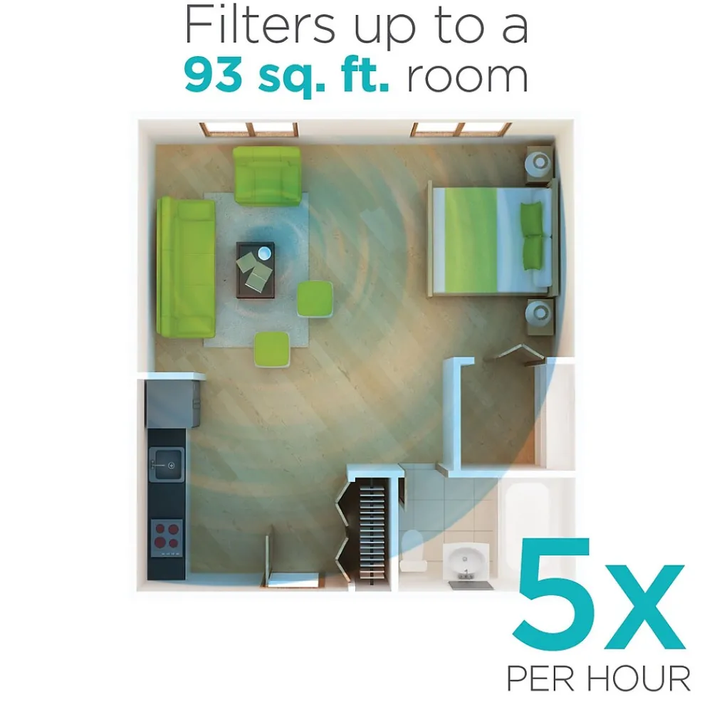 Our indoor home air purifier has 3 filtration stages that eliminate 99.97% of pollutants as small as 0.3 microns to ensure you have the highest quality air. The pre-filter filters larger particles such as dust and pet hair, making this one of the best dust mite air purifier and pet dander purifier on the market. This indoor air purifier contains an activated carbon filter reduces household odors such as cooking smells and secondhand smoke. It provides 93 square feet of coverage 5x per hour. This ENERGY STAR certified compact air purifier is equipped with touch controls to customize settings such as Low, Medium and High speeds. In Sleep Mode the fan operates at a reduced speed. Features a shut-off timer with 1, 2, 4 and 8 hour options. An audible sound and indicator light alerts you when the filter needs to be replaced.