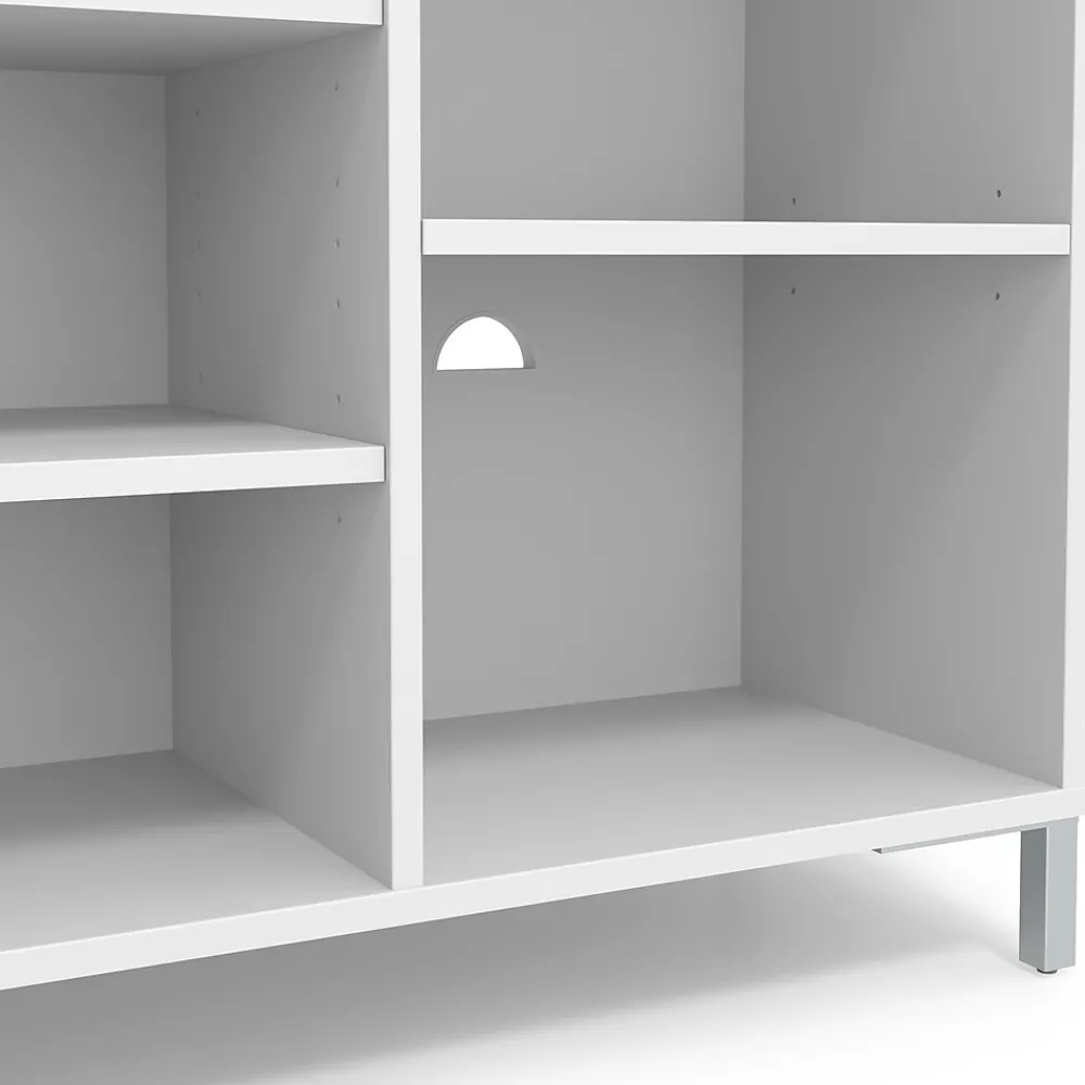 Keep business documents and office supplies organized for a professional environment with this bookcase. Five shelves offer open storage space, while the included grommet reinforces the cable management holes for handling electronic device wires effectively. This Union & Scale™ Essentials five-shelf bookcase features adjustable shelves for customizing the storage space according to your needs and the white finish provides a clean, fresh look for your workplace.