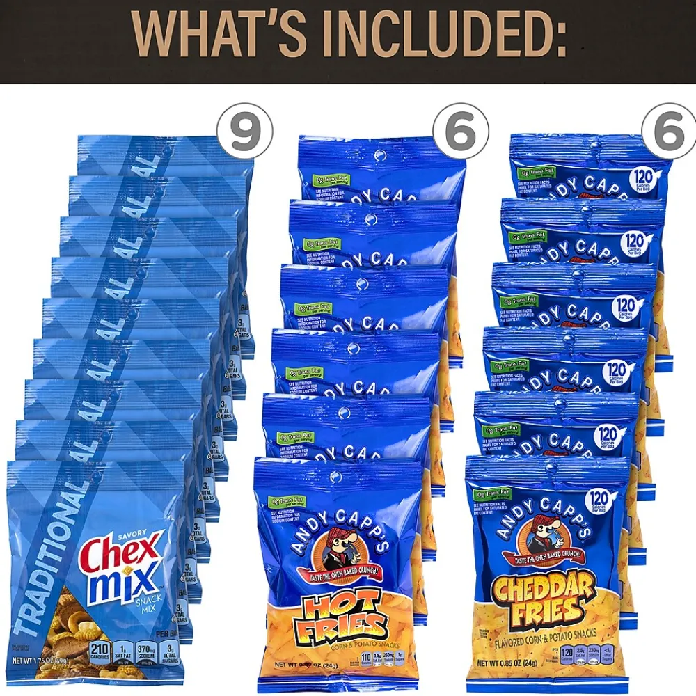 - Welch’s Fruit Snacks, M&M’s, Goldfish, Nabisco Cookies and Crackers, Cheez Its, Pringles, Combos, Chex Mix, Rice Krispies, Snyder’s Pretzels, Dot’s Pretzels, Cotton Candy, Party Mix, Herr’s Popcorn, Planters Peanuts, Andy Capps Fries, and M&M Cookies
