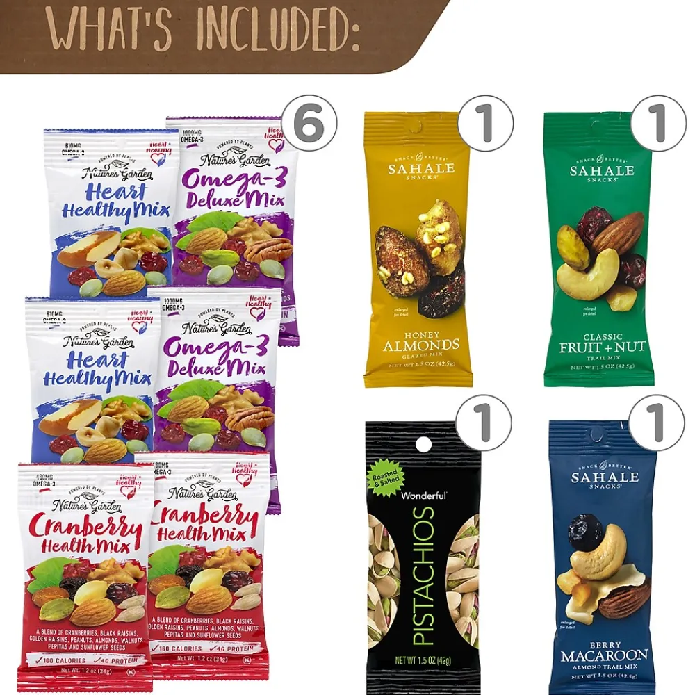 - A 19-Pack Snack Box filled with delicious bags of Mixed Nuts