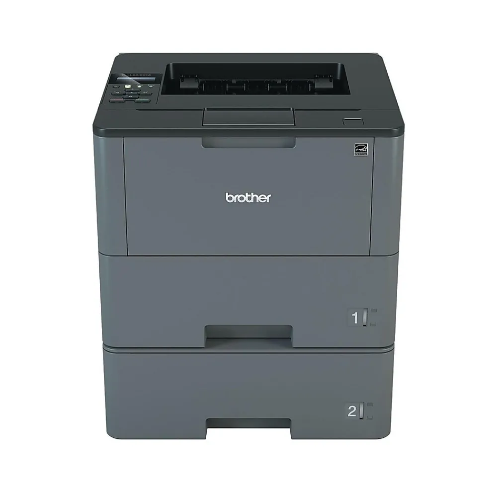 Handle daily paperwork needs with this monochrome laser printer. Dual 520-sheet trays deliver the capacity needed to take on high-volume print jobs, and speeds of up to 48 pages per minute (1) mean less time waiting for your documents to complete. This printer boasts a resolution of 1200 x 1200 dpi, providing crisp, clear text for better readability. With a one-line LCD display and simple controls, this laser printer offers effortless navigation. Use the Wi-Fi Protected Setup for one-touch wireless access, and create a network connection using the built-in Gigabit Ethernet. Mobile connectivity lets you send jobs from your tablet or smartphone, so there’s no need to transfer files before printing. The 50-sheet multipurpose tray and two standard trays let you print everything from envelopes to labels, making this Brother printer a versatile addition to your office.