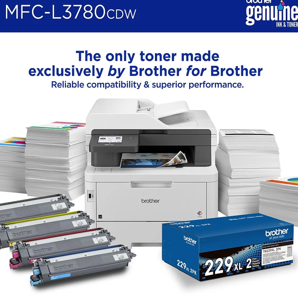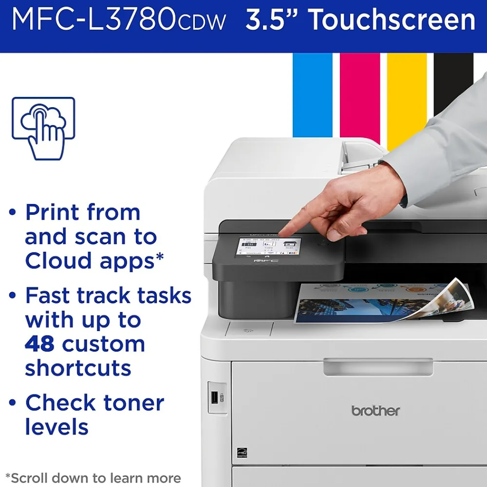 Offering small business leaders an exceptional level of efficiency with incredible print speeds and productivity-propelling features, it consistently creates documents that capture the attention of clients, customers, and c-suite executives. Achieves print speeds up to 31 pages per minute (ppm)(1) and scan speeds up to 29/22 images per minute (ipm)(2) (black/color). Plus, versatile paper handling and an intuitive 3.5” touchscreen boost productivity, simplify tasks, and help your business thrive. Advanced security features help protect sensitive content while printing, and include the heightened protection of an NFC card reader for badge authentication. Engineered and supported by Brother, the MFC-L3780CDW is a hard-working and impactful addition to any small workspace.