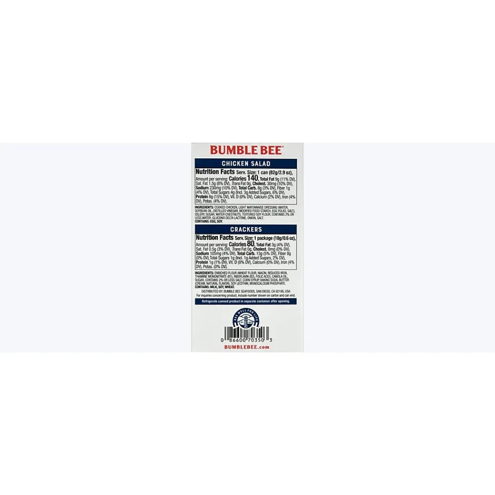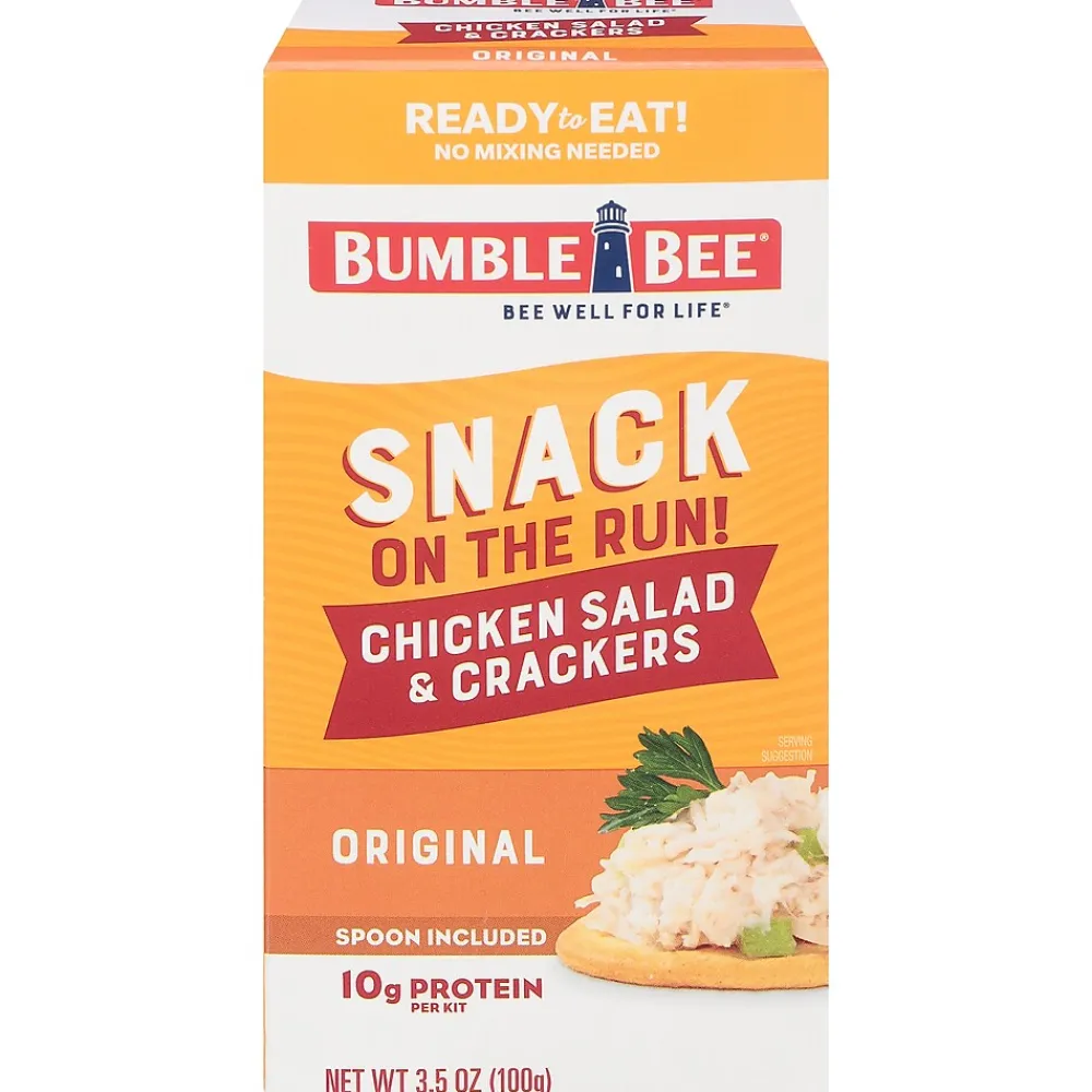 Make satisfying snacks quickly with these 3.5-ounce packs of chicken salad. For added convenience, each single-serving pack also contains six crackers and a spoon. Simply pop open the easy-peel can and enjoy this protein-packed refreshment with no dishes to clean up. Plan ahead for guilt-free snack time with this 12-pack box of Bumble Bee Snack On The Run! chicken salad sets.