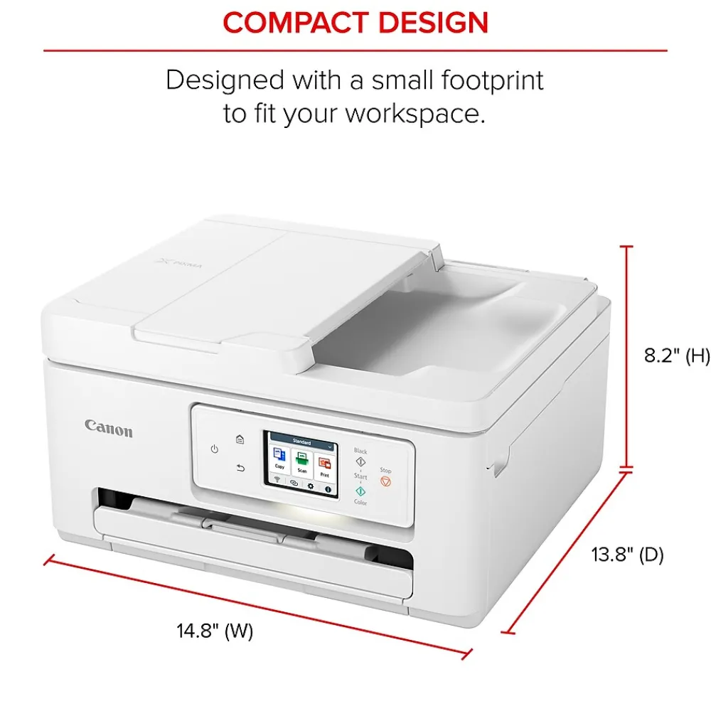 This stylish and simple-to-use home printer has the functions your family may need, including a 35-sheet (plain paper, letter size) automatic document feeder. The Canon PIXMA TR7820 printer prints high-quality borderless photos as well as documents with sharp smudge-resistant text. Print from or scan directly to compatible mobile devices with user-friendly Wi-Fi capabilities. PIXMA Print Plan gets replacement ink delivered right to your door automatically when you run low on ink. Depending on your expected monthly print needs, you select the appropriate plan for you (save 20-70% on the cost of ink versus traditional ink purchase, free 100 pages after enrollment, hassle-free delivery, flexible plan options available).