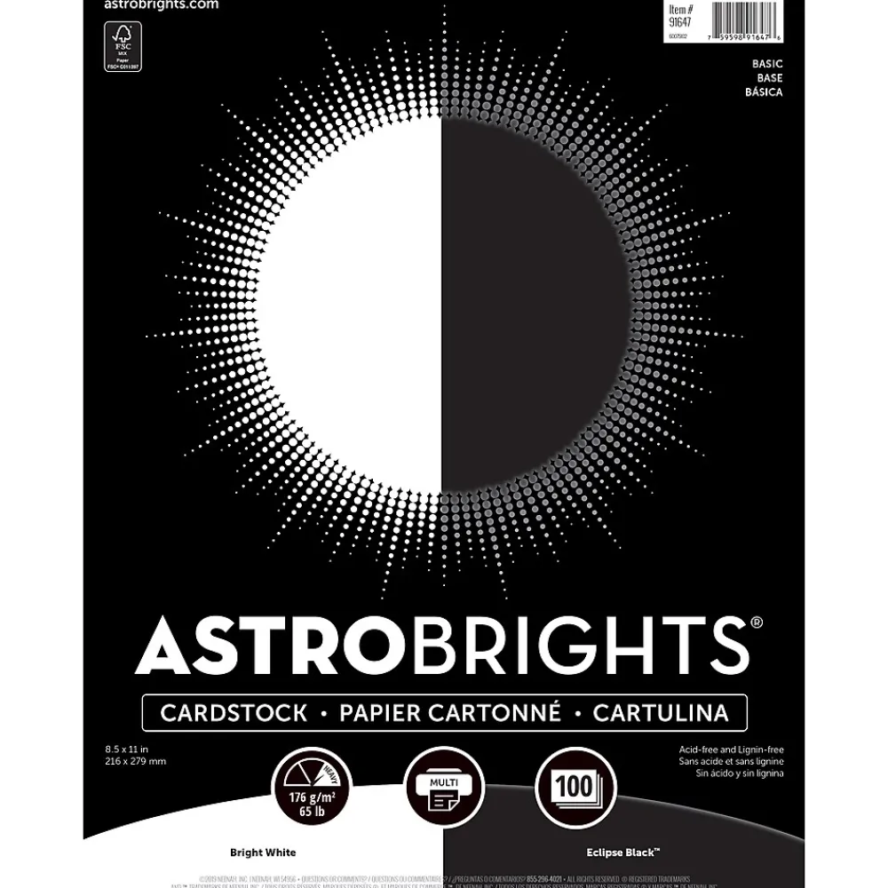 Let your imagination take off with Astrobrights colored cardstock, in Black & White 2-Color Assortment. Creative geniuses and novices alike can create flyers, invitations, presentation covers, scrapbooking, school projects and DIY paper crafting. Display and store projects with confidence, since each sheet is lignin and acid-free. Plus, this cardstock works well with copiers, inkjet, and laser printers. Astrobrights cardstock is also compatible with electronic cutting machines so you can create intricate letters, shapes and other designs. Save money on pricey full-color ink – just add black ink! Brighter Colors. Brighter Ideas.