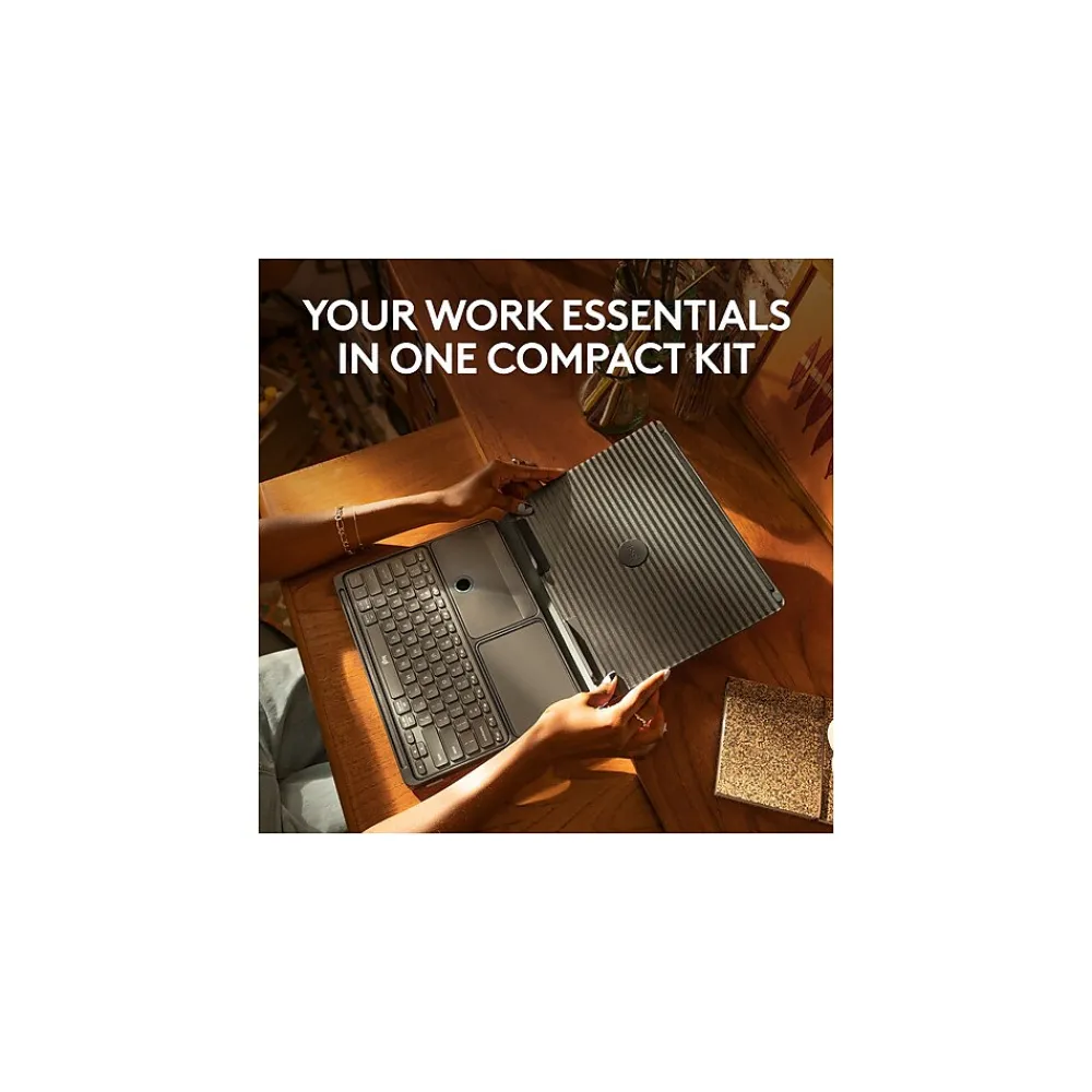 - YOUR WORK ESSENTIALS IN ONE COMPACT KIT: Logitech Casa has all you need to work from home in one compact kit, with a wireless keyboard, wireless touchpad, storage space for smaller items such as stationery and a book-like case that transforms into a laptop stand.