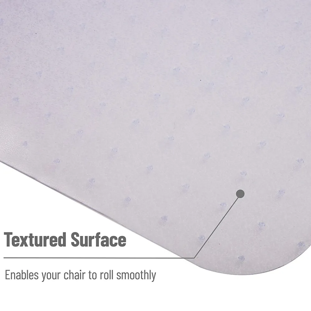 This PVC floor mat not only allows you to move freely in your workspace but also provides you with the comfort you need while working. Specifically designed for low pile carpeting, the mat features molded cleats that ensure it stays in place no matter how much you move around.Crafted from flexible PVC, this office mat boasts durability and longevity. With it, you can say goodbye to the constant need to replace thin, torn, or cracked mats. Maintaining the mat is as simple as wiping it with a soft cloth and mild soap and water.One of the best things about this mat is that it ships flat, meaning it’s ready for immediate use with no assembly required. This durable office mat would make a great gift for anyone who wants to enhance their comfort and productivity in their workspace.
