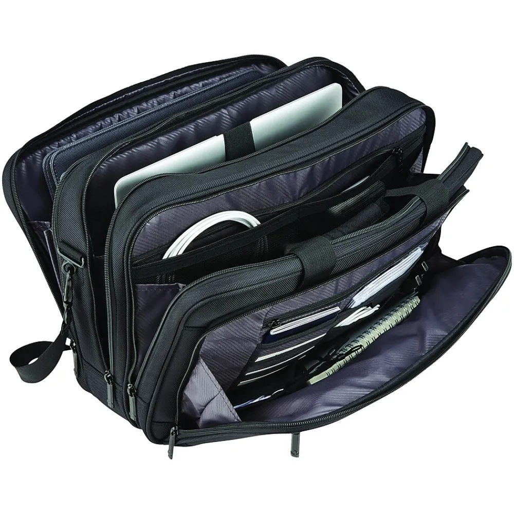 - For those who need more, this three-compartment briefcase is the perfect solution
