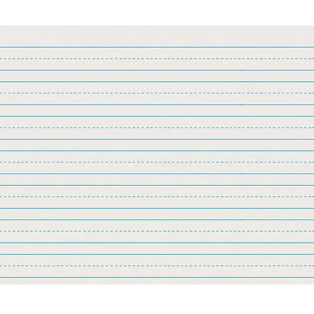 Clean White newsprint has a light blue ruling on both sides. Sheets are ruled 3/4″ the long way, and a 3/8″ dotted midline serves as a guide for controlled writing. Also includes a 3/8″ skip space, which allows room for letter descenders, making it great for handwriting practice and tracking students’ handwriting progress over time. Helps to build a solid foundation for students to write legibly and communicate effectively through writing. Each package contains 500 sheets. Measures 11″ x 8.5″. Recyclable. Sold as 3 packs for a total of 1500 sheets.
