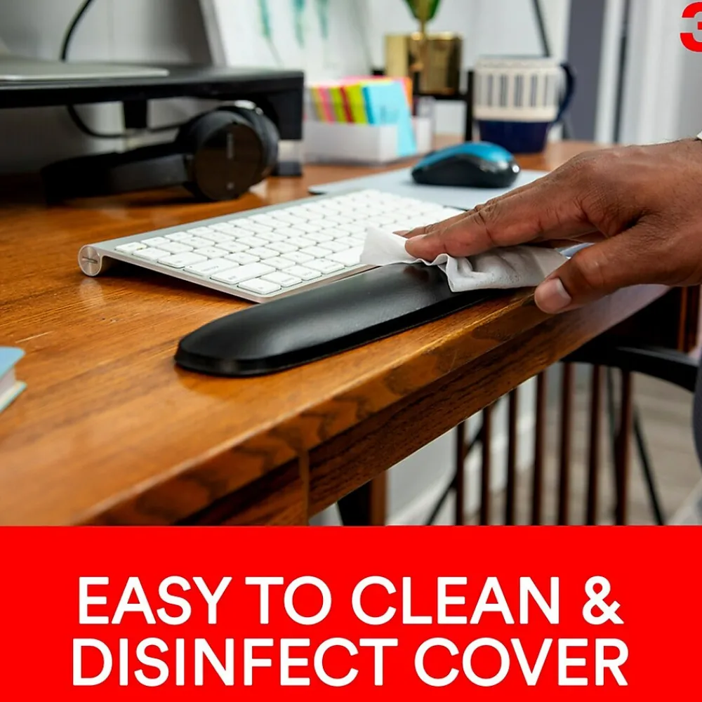 3M Gel Wrist Rest for Keyboard and Mouse has a tilt adjustable platform for comfort and keeps keyboard in place. The easy to clean leatherette cover has antimicrobial product protection which inhibits the growth of microorganisms, such as bacteria, on the product surface, that can cause stains, odors and product degradation, 19.6″ x 10.6″ x 1″.