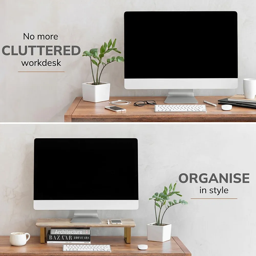 - Raises monitor screens 4.75″ for comfortable viewing