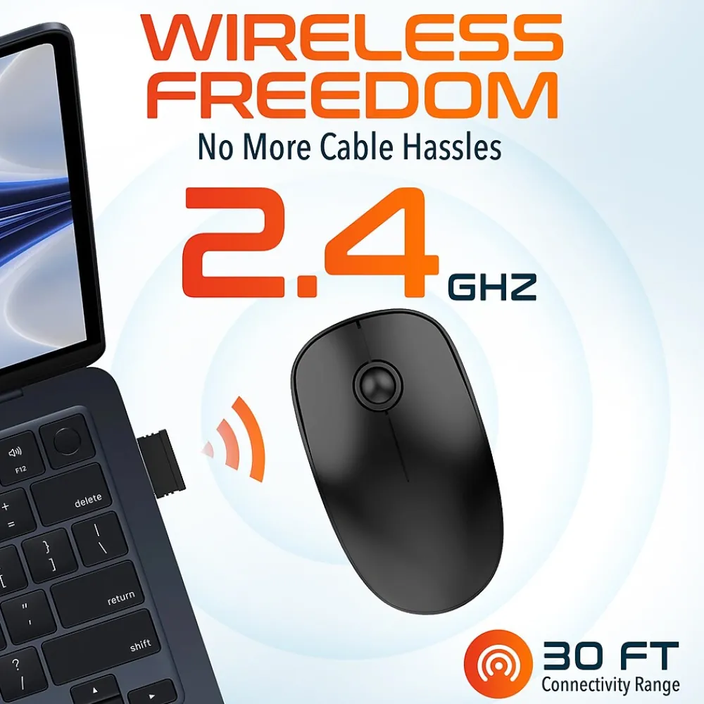 - Designed with 3 smooth and noiseless buttons, the wireless mouse for laptop provides effortless control while minimizing noise for a distraction-free experience.