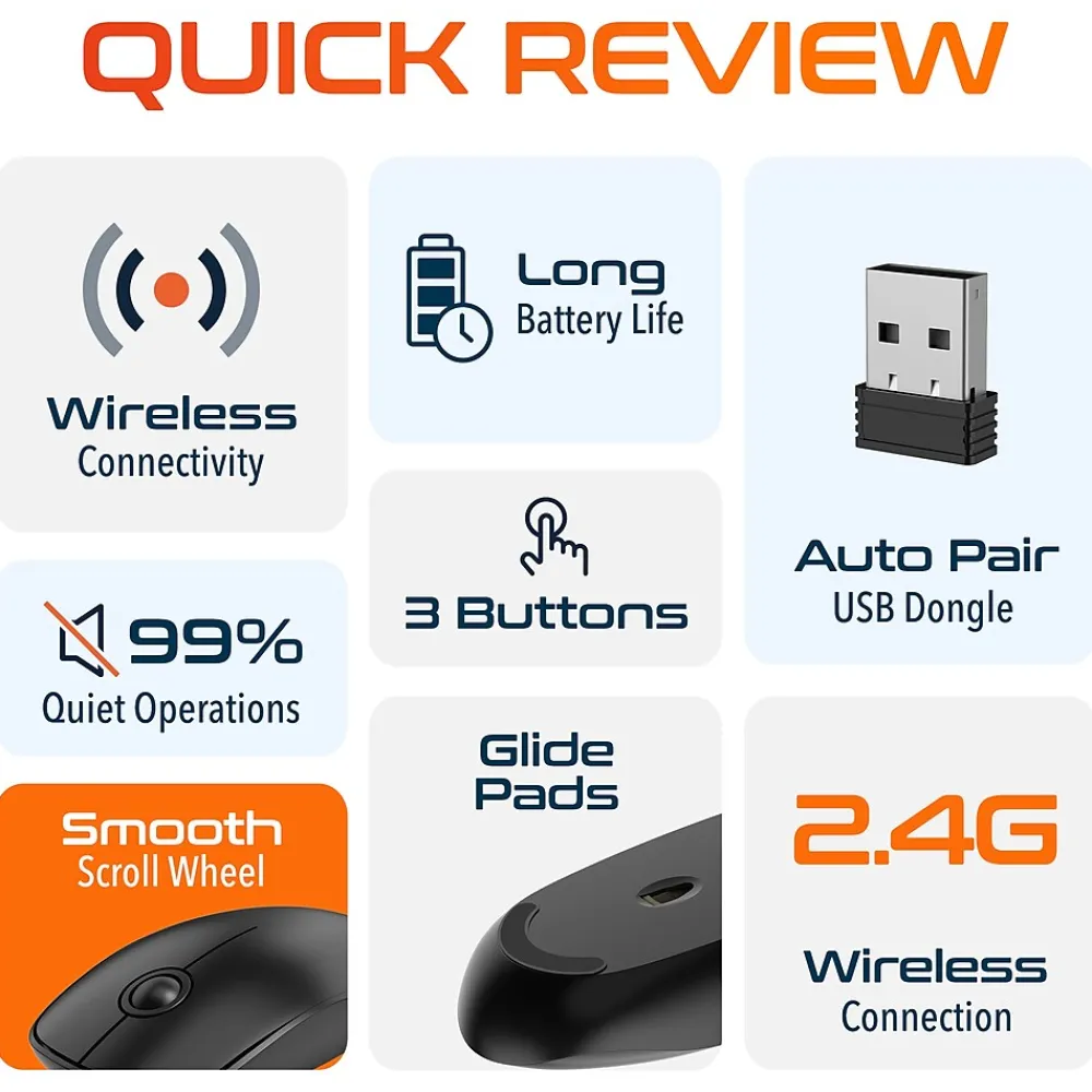 - Delton S15 wireless quiet mouse delivers dependable 2.4GHz wireless connectivity, ensuring superb stability through an auto-pair USB dongle for quick setup.