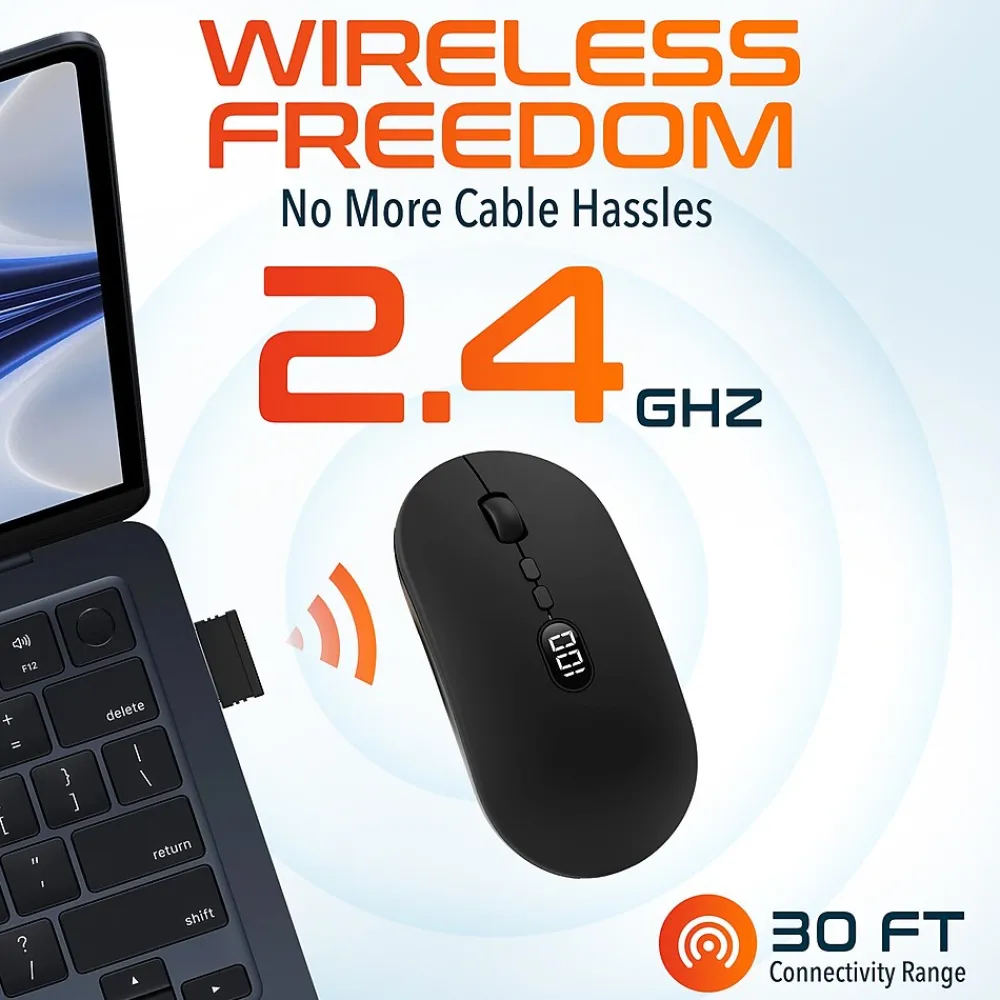 - This rechargeable mouse wireless features an advanced electronic display that provides real-time feedback on battery life, clearly showing the remaining power percentage.