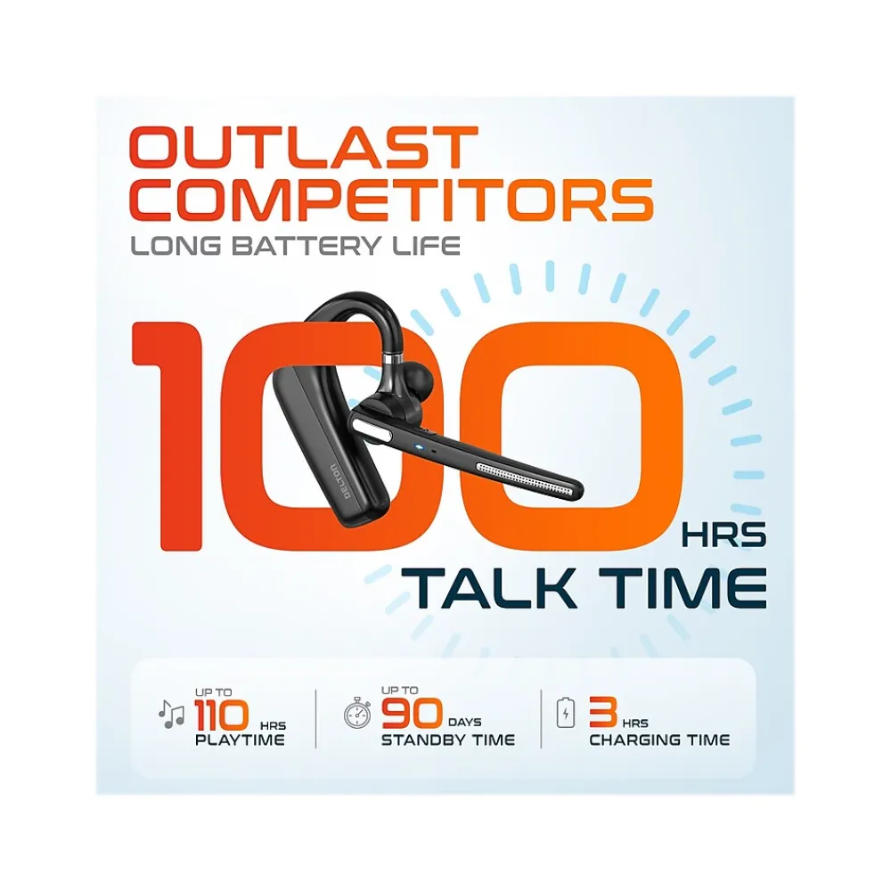 - Ultralight headset packs a powerful battery that offers up to 100 hours of talk time and 90 days (that’s over 2000 hours) of standby time; the keyboard uses one AA battery, and the mouse also uses one AA battery