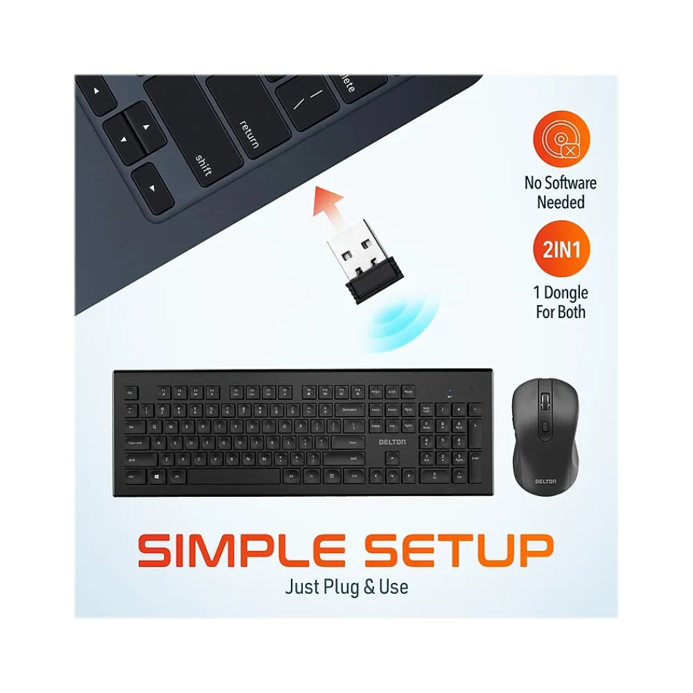 - Both the keyboard and mouse feature Delton’s proprietary energy-efficient chipset