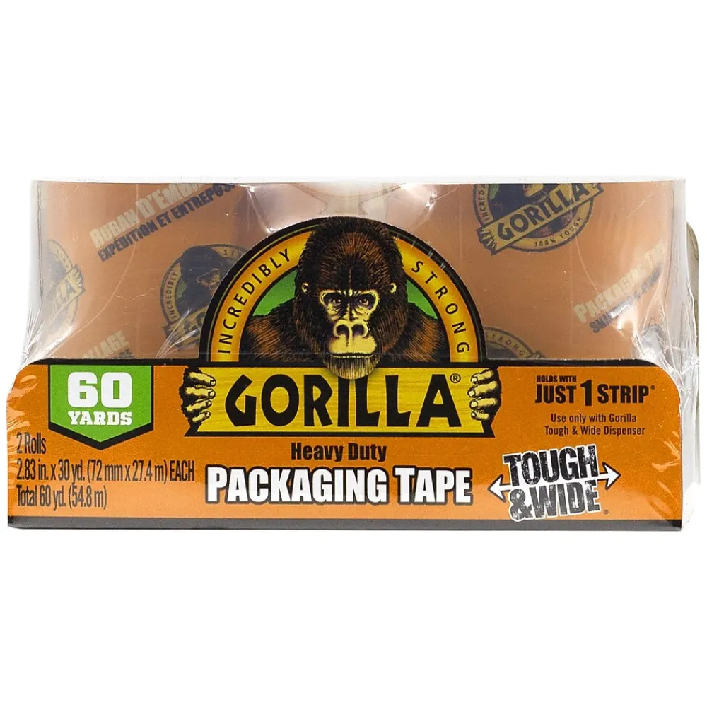 Gorilla Packaging Tape Tough & Wide Refill Rolls provide the ultimate solution for moving, shipping and storing. This adhesive tape offers heavy duty strength and durability. The crystal clear packing tape is moisture and temperature resistant, and at nearly 3 inches wide you can seal boxes with just 1 strip. With its wider tape construction and problem-free tear, this tough tape is simpler to use than other packaging tapes.Easy-to-use refill rolls for use in Gorilla Packaging Tape Dispensers #6020001 and #6045002 help get the job done in no time.