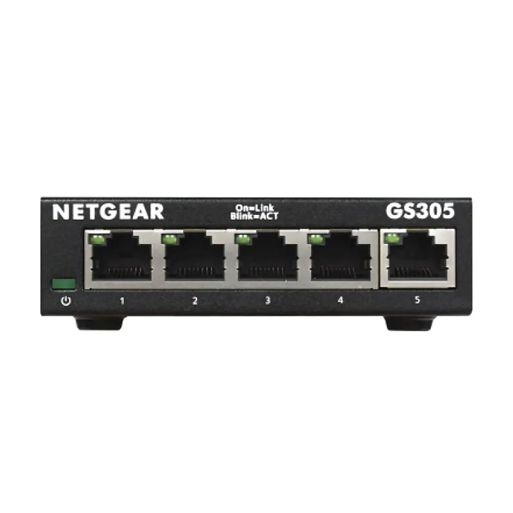 Introducing the Netgear GS305v3 5-port Gigabit Ethernet unmanaged switch for easy, reliable and affordable plug-and-play connectivity to quickly offer Gigabit speeds to your workstations, printers, and PCs with a fanless and sturdy metal design. The Netgear SOHO GS305v3 is perfect for small offices with no IT manager, for conference rooms, retail stores, small offices, or noise-sensitive environments. With this unmanaged plug-and-play switch, you can expand your network connections to multiple devices instantly.