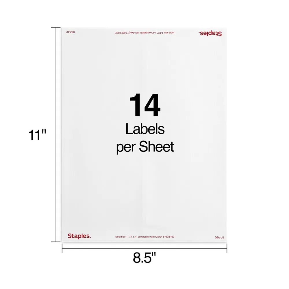 - 14 labels per sheet, 250 sheets per pack; 3500 total labels