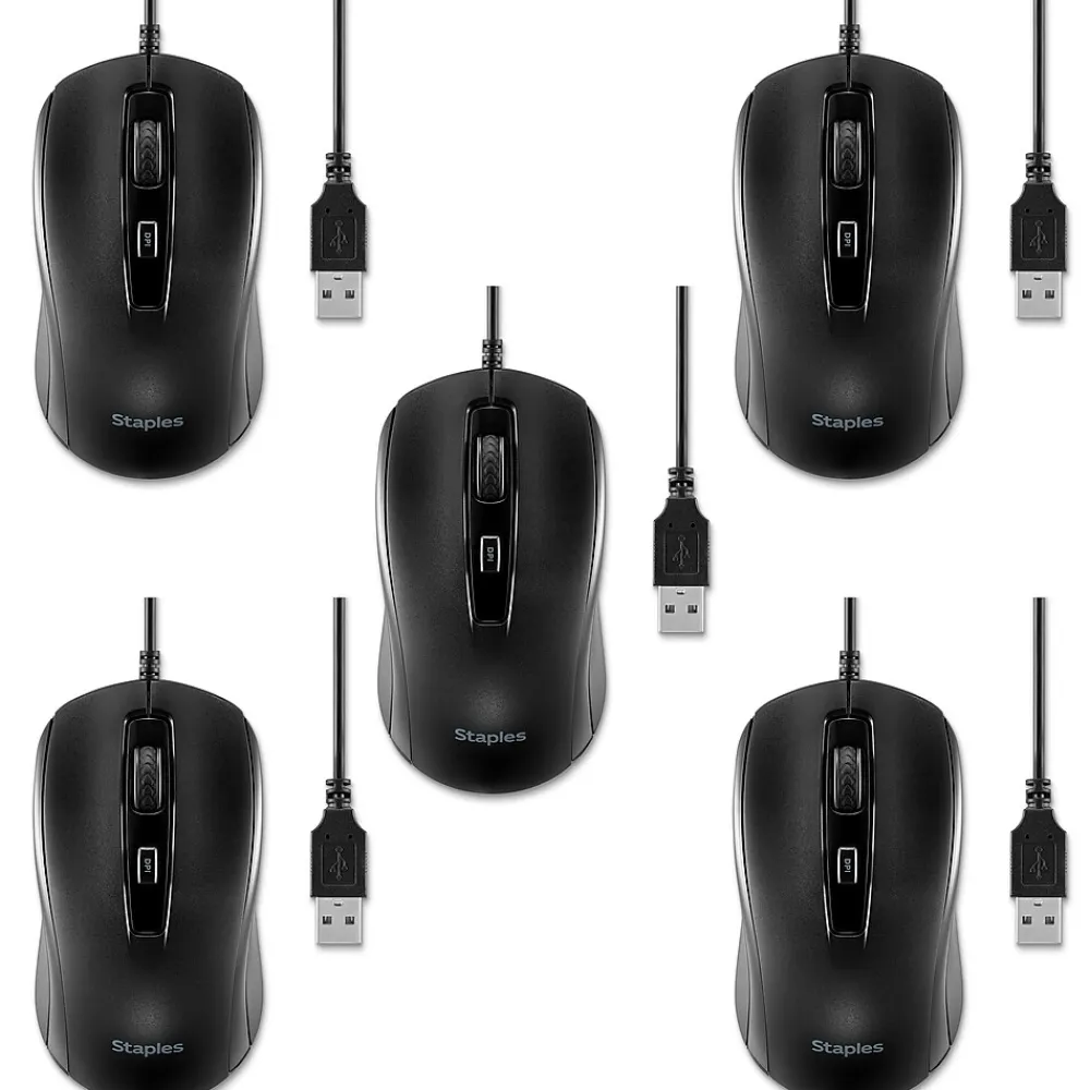 Enjoy comfort and precision with our contoured ambidextrous USB-wired mouse. It has four adjustable DPI settings that will give you smooth and accurate tracking on just about any surface. The mouse features textured side grips for handling and the scroll wheel is perfect for precise line-by-line scrolling. Just plug and play for quick and easy use on all tasks. Compatible with Windows® 10, 11 or later, macOS 10.5 or later, and ChromeOS™, this mouse works with your setup to enhance your workflow with quiet clicks and smooth movement.