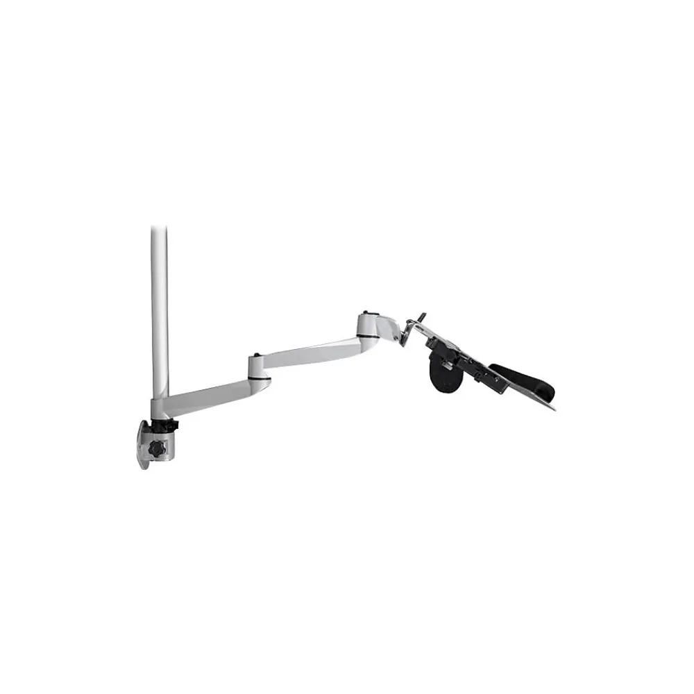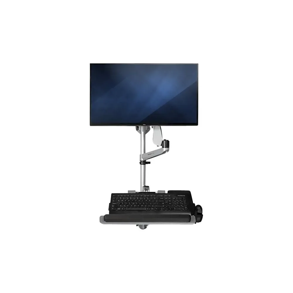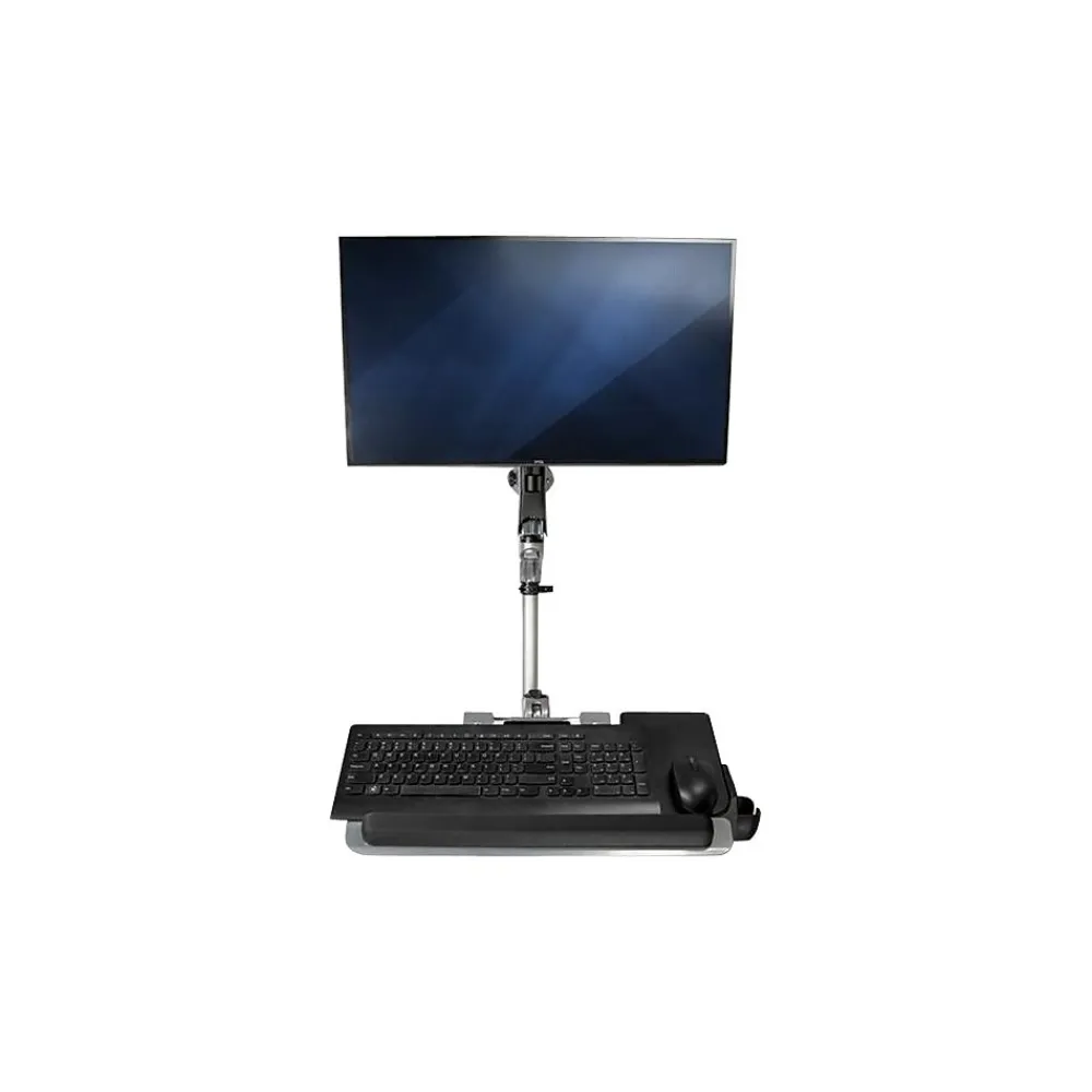 Increase your productivity, with a workstation that fits the way you work. Designed for a wide range of motion, this wall-mounted computer workstation is easily adjustable with independent arms for your monitor and keyboard. Move the wall-mounted sit-stand desk into position to work. Then push it back against the wall when not in use, folding the arms close to the wall. It’s perfect for use in hospitals, clinics, warehouses, and other space-limited areas. Extend the articulating monitor arm up to 25.6″ (65 cm) from the wall. For ideal positioning, tilt or swivel your monitor, or rotate 360 degrees. The sit-stand workstation supports a VESA mount (75×75, 100×100) monitor up to 30″, with a maximum weight of 19.8 lb. (9 kg). This wall-mounted height-adjustable desk enables a wide range of users to work in comfort. Adjust the height of both arms along the pole up to 17.5″ (44.5 cm), plus the spring monitor arm has a height adjustment range of 10.6″ (27 cm). Place your keyboard where you need it, with an independent keyboard tray that extends up to 30.9″ (78.4 cm) from the wall. Tilt the keyboard back to make sure your wrists are in a neutral position while typing. Place your mouse in the holder when not in use. The modular design, with quick slide-and-click connections, makes installation easy and saves time when setting up multiple units.