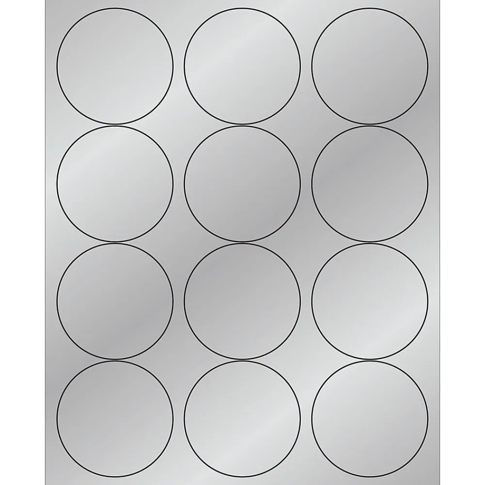 2 1/2″ Silver Foil Circle Laser Labels. Gold and Silver Labels add a touch of elegance to your products or mailings. Heat resistant adhesive resists jamming. Print labels on a Laser printer.