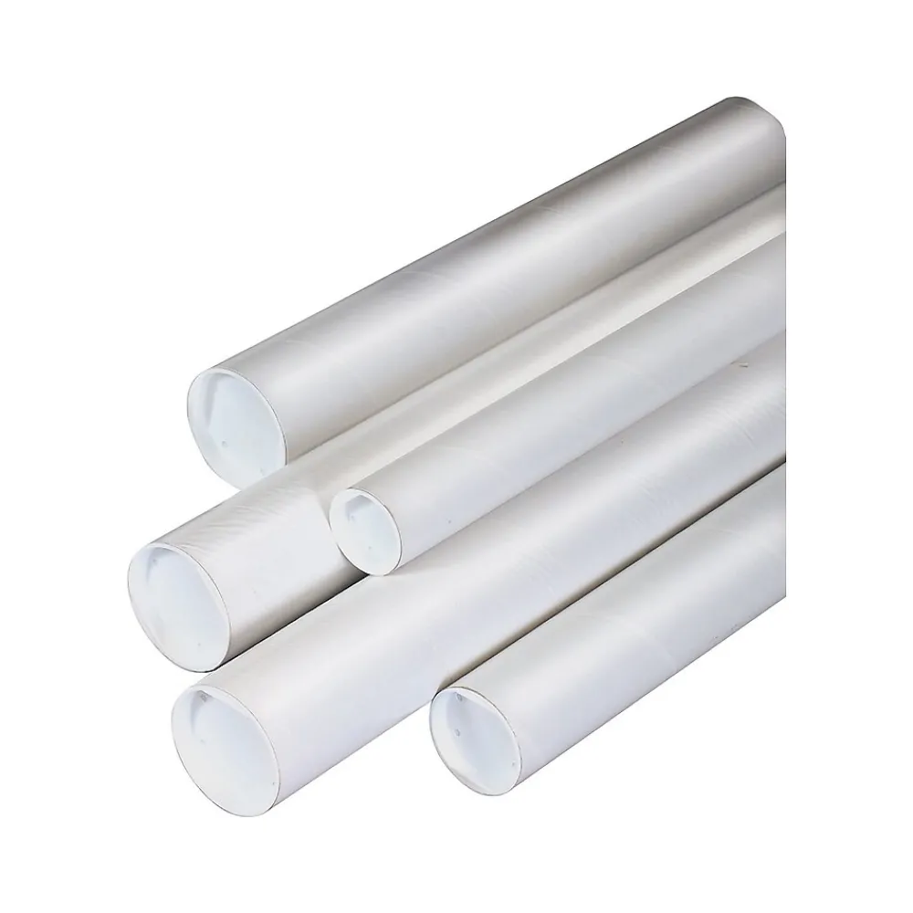Keep your company’s large-format documents protected during shipping with these mailing tubes. The white color lets mailing labels stand out for easy readability, and matching plastic end caps secure each end to keep paperwork safely inside. With three-ply spiral-wound kraft construction, these Staples mailing tubes stand up to the rigors of the mailing process to ensure your documents arrive free from damage.