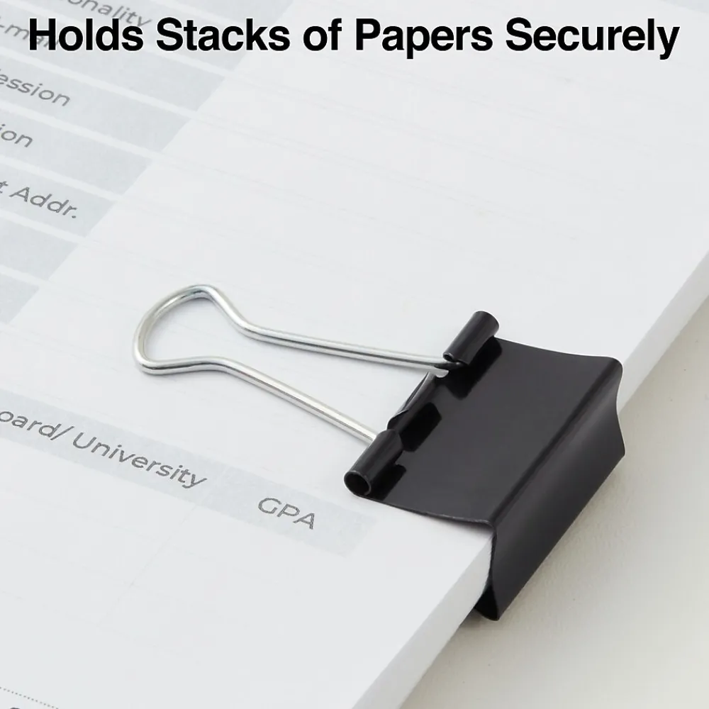 Hold stacks of paper securely together with these Staples metal medium binder clips. Each clip features a spring-tight grip to bind files together, preventing papers from slipping out, while the sturdy plastic packaging offers a reusable storage option. These Staples metal medium binder clips have a compact size that helps makes stacked sheets of paper more manageable.