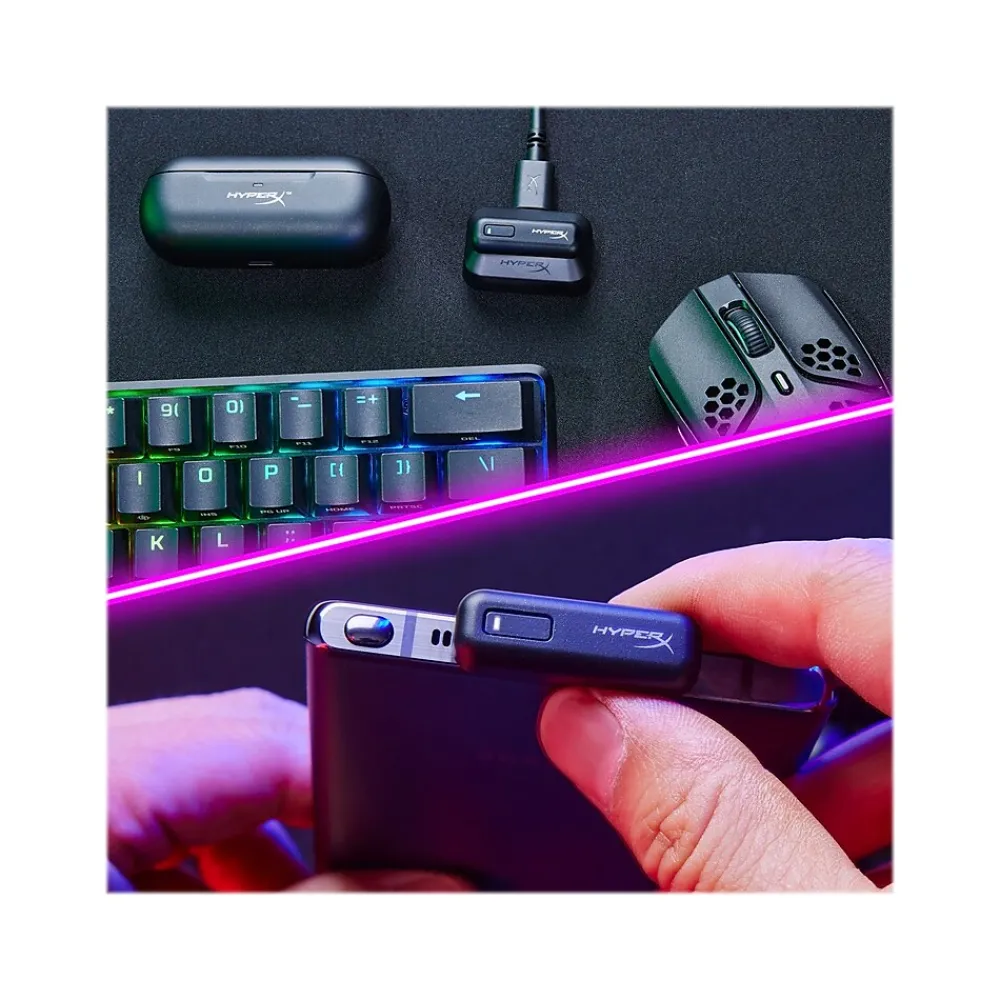 The HyperX Cloud MIX Buds are true wireless earbuds designed for gaming, with a low-latency 2.4GHz connection. Light and comfortable, this pair of Cloud MIX Buds offers a USB Type-C wireless adapter for ultralow-latency gaming, and convenient Bluetooth connectivity for listening to music or answering phone calls when you’re on the go. The included USB Type-C to USB Type-C pass-through extender lets you bring the adapter closer to you for improved wireless performance during PC desktop gaming. When the buds are connected to a PC, players can take advantage of DTS Headphone: X, which ups immersion by providing virtual 3D spatial audio with precise sound localization. Three included ear tip sizes ensure that you’ll have a secure, personalized fit with signature HyperX comfort. With up to 33 hours of battery life on a single charge, you’ll have plenty of juice to keep the good times going.
