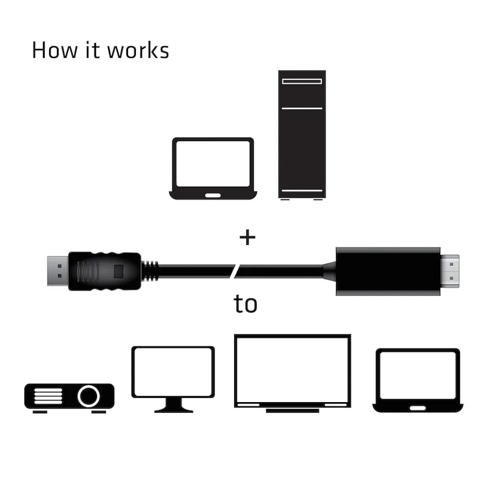- DisplayPortâ„¢ 1.4 to HDMIâ„¢ 2.0b HDR Cable Male/Male to connect your DisplayPort Device/PC to your HDMI Monitor/Television