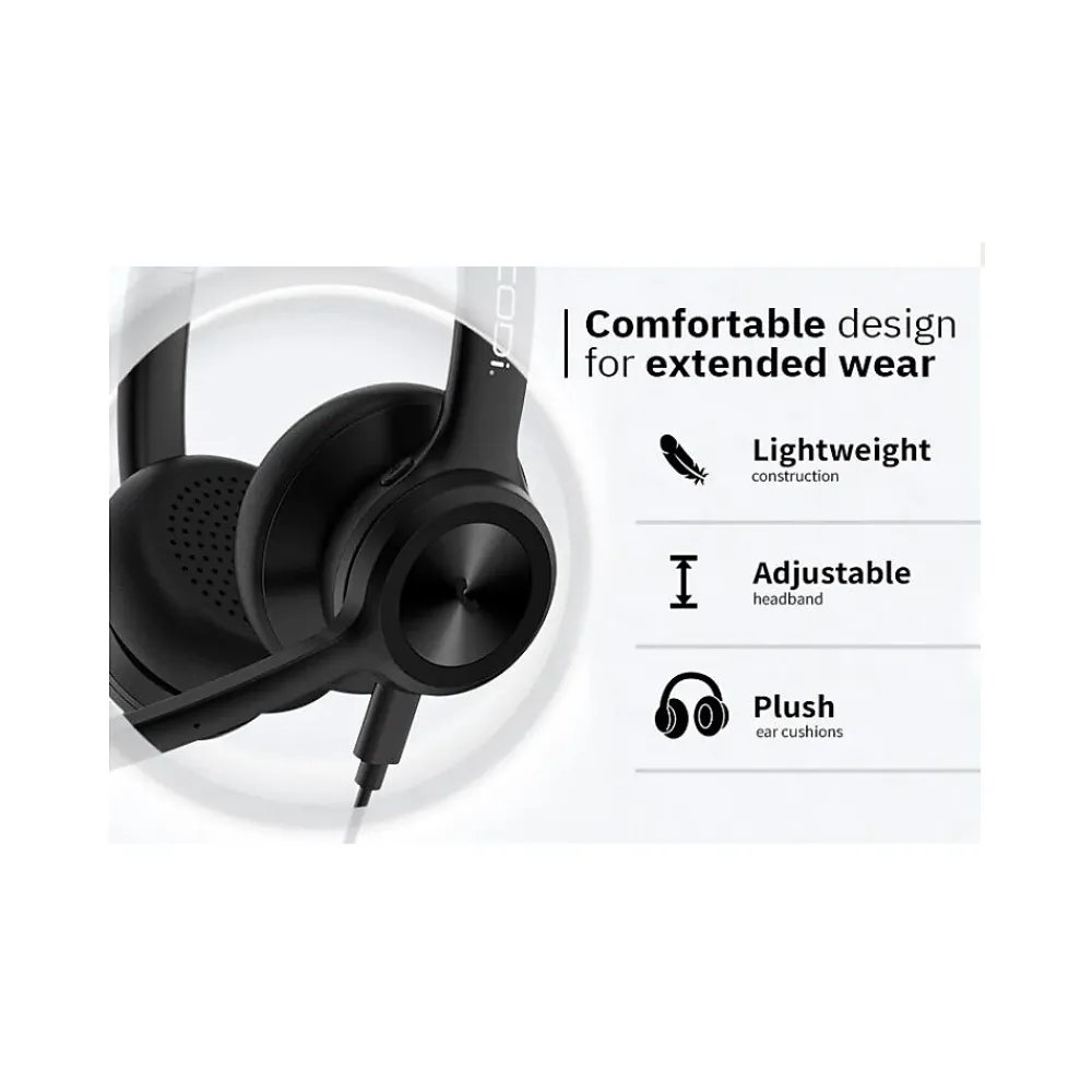 With this USB-A wired headset, enjoy crystal clear audio calls while in a noisy office or call center environment. Specially designed to pick up on the frequency of the human voice, this headset delivers superior call quality. Work efficiently throughout the day without having to worry about call quality.