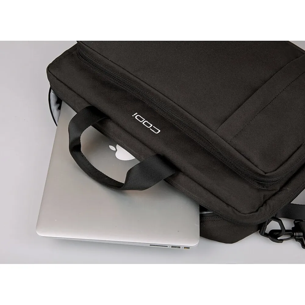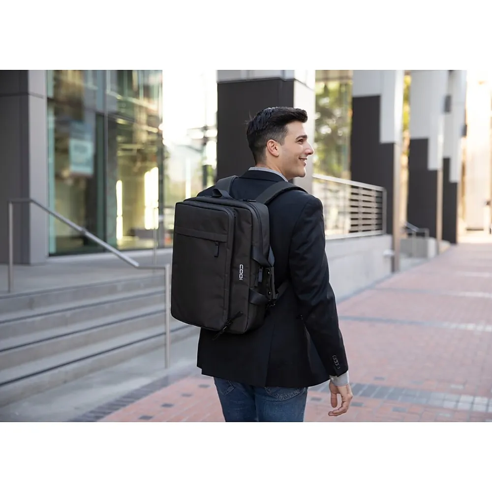 Proud to play a part in reducing ocean-bound plastic, CODi’s new Terra Hybrid Briefcase/Backpack delivers. This briefcase/backpack has exterior materials made 100% from 34 recycled plastic bottles. All of the air mesh, webbing, and lining are made from ocean-bound plastic, as well. Go from business to casual as this bag transforms from a briefcase to a backpack by slipping the removable and adjustable padded shoulder straps out from their stow-away zip compartment. As a bonus, the removable/adjustable shoulder straps also allow you to wear this as a messenger bag. With a broad-spectrum antimicrobial coating, the Terra bag helps prevent the growth of bacteria on the product. Protect your laptop with a dedicated, padded 15.6″ compartment. Get easy access to your essentials with a front pocket and several dedicated internal compartments. Complete with rain guard protection for those rainy commutes, the Terra bag also has a breathable air mesh back panel for added comfort.