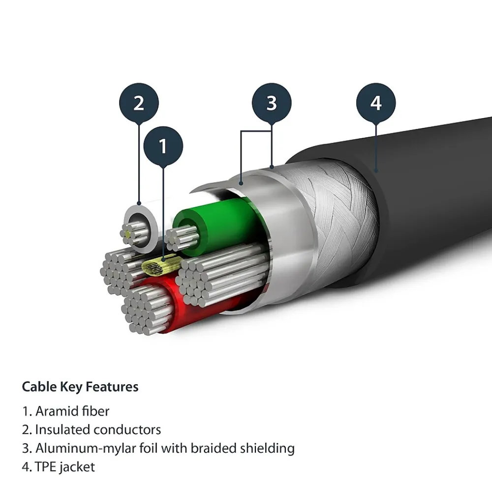 - Rugged with extended strain relief and soft TPE tested to withstand 10000+ bend cycles at 180° and up to 5000 insertion cycles