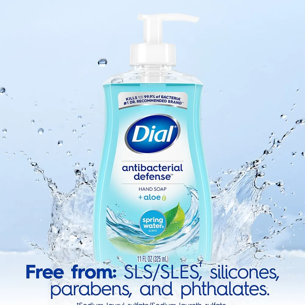 Feel the sensation of an invigorating clean with the Dial Complete Spring Water antibacterial liquid hand soap. Find refreshment in a hand wash that removes dirt and bacteria while conditioning skin. Now you can get tough on dirt and bacteria while being gentle on your hands. This Dial antibacterial hand soap kills 99.99% of bacteria, plus it’s mild enough for frequent use. Dial is one of the doctor-recommended hand soap brands. Awaken your senses as you wash, with the natural and refreshing Spring Water scent that’ll leave you with healthy-feeling skin. How to use: pump into hands, lather vigorously in hands for at least 30 seconds, then rinse clean with water, and enjoy soft, healthy-feeling hands.