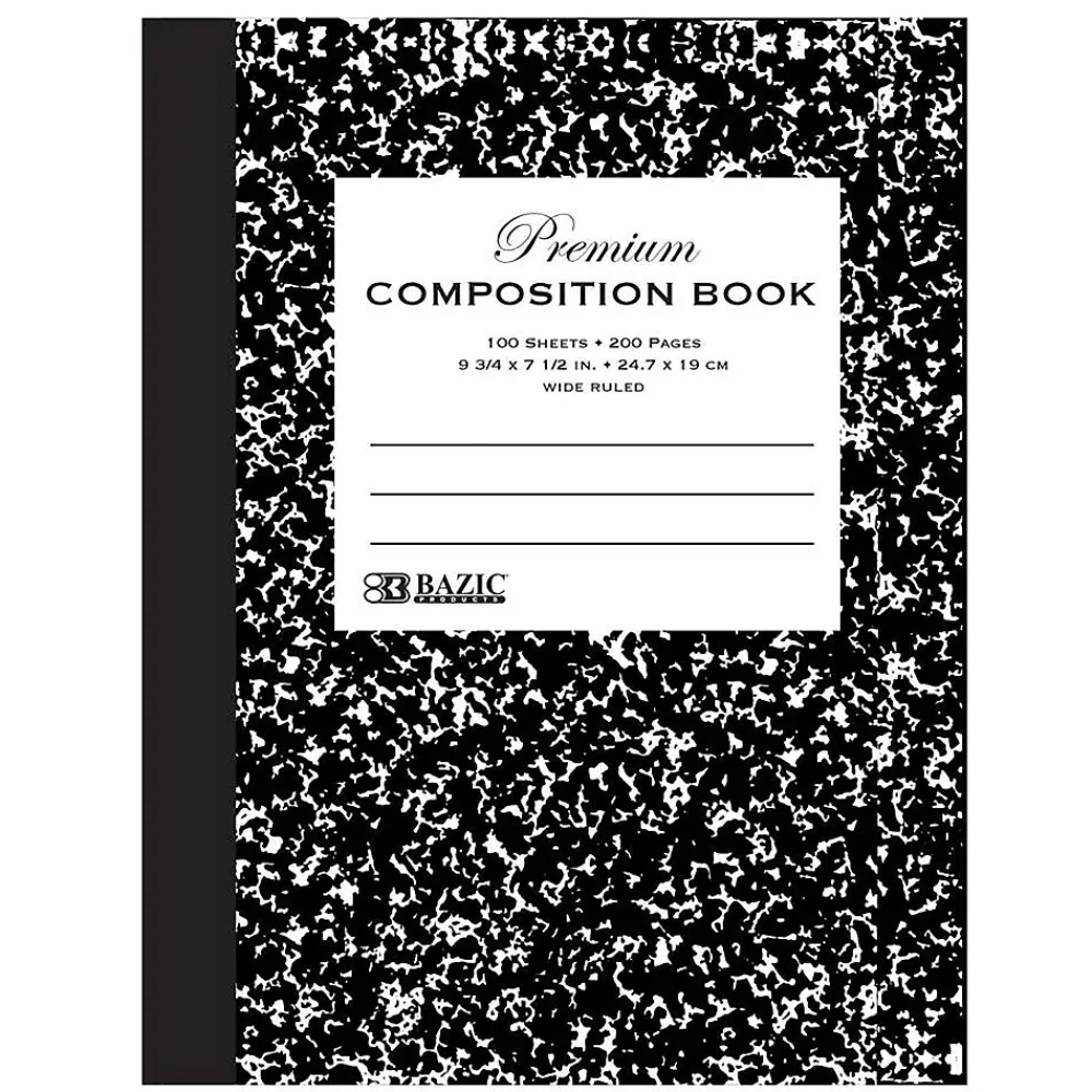 - SIMPLY NOTETAKING. Black marble composition notebooks come with 100 sheets of wide-ruled paper. Ready for any assignment and take it with you on the go! Overall Size: 9.75″ x 7.5″.