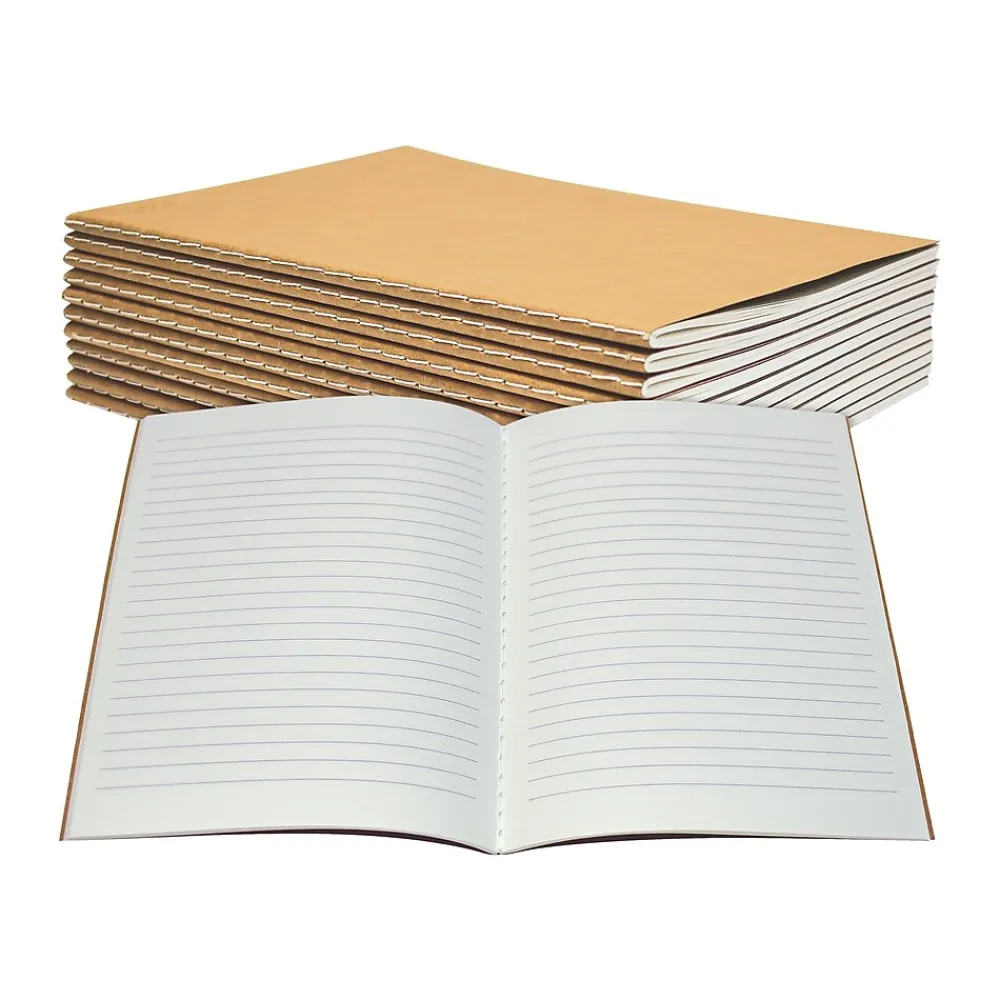 The Better Office A5 kraft paper cover notebook with 30 lined off-white sheets, stitched spine, and soft cover is perfect for travel journaling, task lists, assignments, and more.