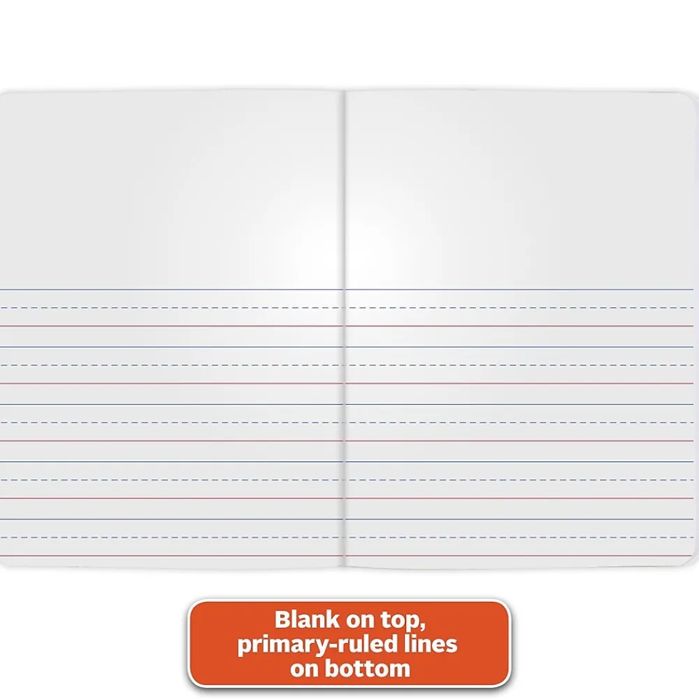 Create stories and draw pictures with this white primary journal. The wide-ruled spacing and guide marks help children learn how to write letters, while the large margin at the top of each page provides plenty of room for writing titles and creating illustrations. This Mead Grades K-2 Primary Journal wide-ruled primary journal conforms to Zaner-Bloser, McDoughal Littell and D’Nealian handwriting methods, making it ideal for use in kindergarten, first grade, and second grade classrooms.