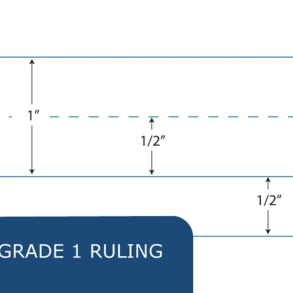 - Grade 1 Skip-line ruling; 1″lines with 1/2″ divider