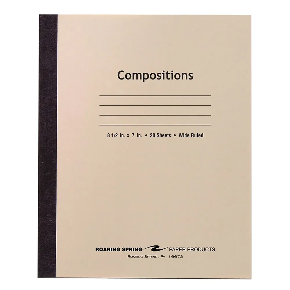 Refer back to past notes easily with this stitched manila-tag-cover composition book. With a center-sewn tape-bound design, this composition book keeps pages safe and secure, while the wide-ruled blue lines offer ample space for writing. This Roaring Spring Paper Products composition book comes with 20 sheets of paper, providing plenty of room for working on assignments, brainstorming putting together other projects.