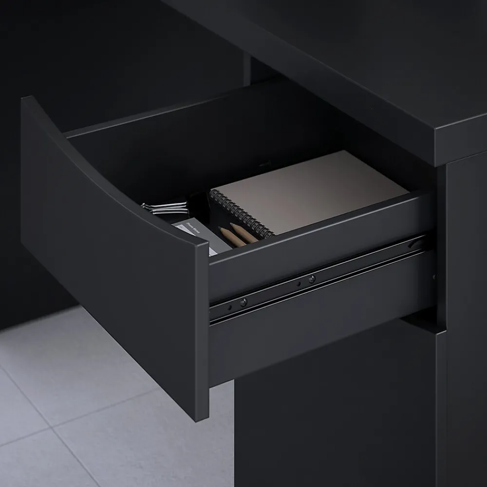 - Box drawer glides on smooth ball bearing slides for an easy reach to miscellaneous supplies