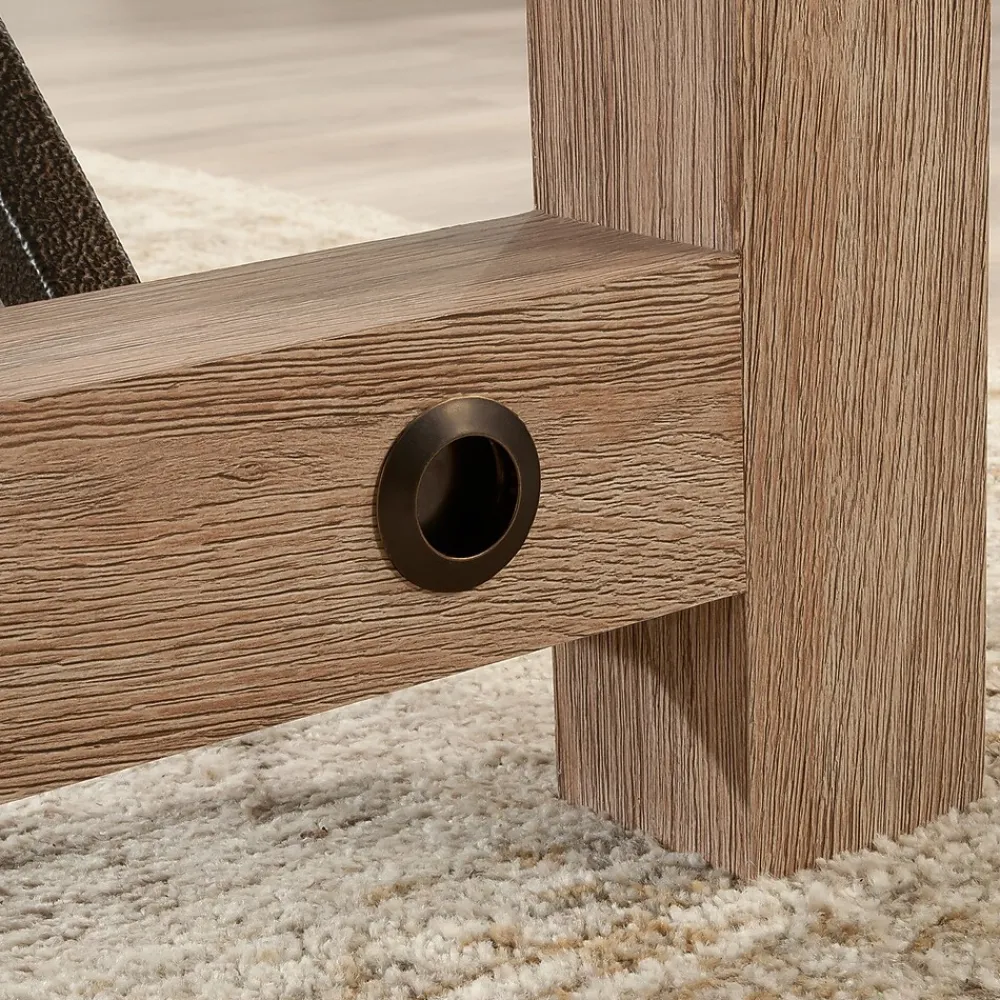 Invite the soothing simplicity of modern farmhouse into your office space with this commercial office desk. The base of this residential office furniture is finished in the natural, neutral tones of Brushed Oak with a Pebble White accent finish on the desk surface, for an elegant twist. This business desk has a powder coated metal support frame for a touch of rustic flair. The thick and lightweight panel construction of the executive desk from the Dixon City collection allows for easier portability in your home office space without sacrificing strength. Finished on all sides for versatile placement in a home office or living space, this metal and wood office desk meets BIFMA standard x5.9 for safety, durability, and structural performance. With the versatile selection of this highly configurable collection of office furniture, the executive desk is a blank canvas waiting to be styled with a complementary ensemble of contemporary country additions.